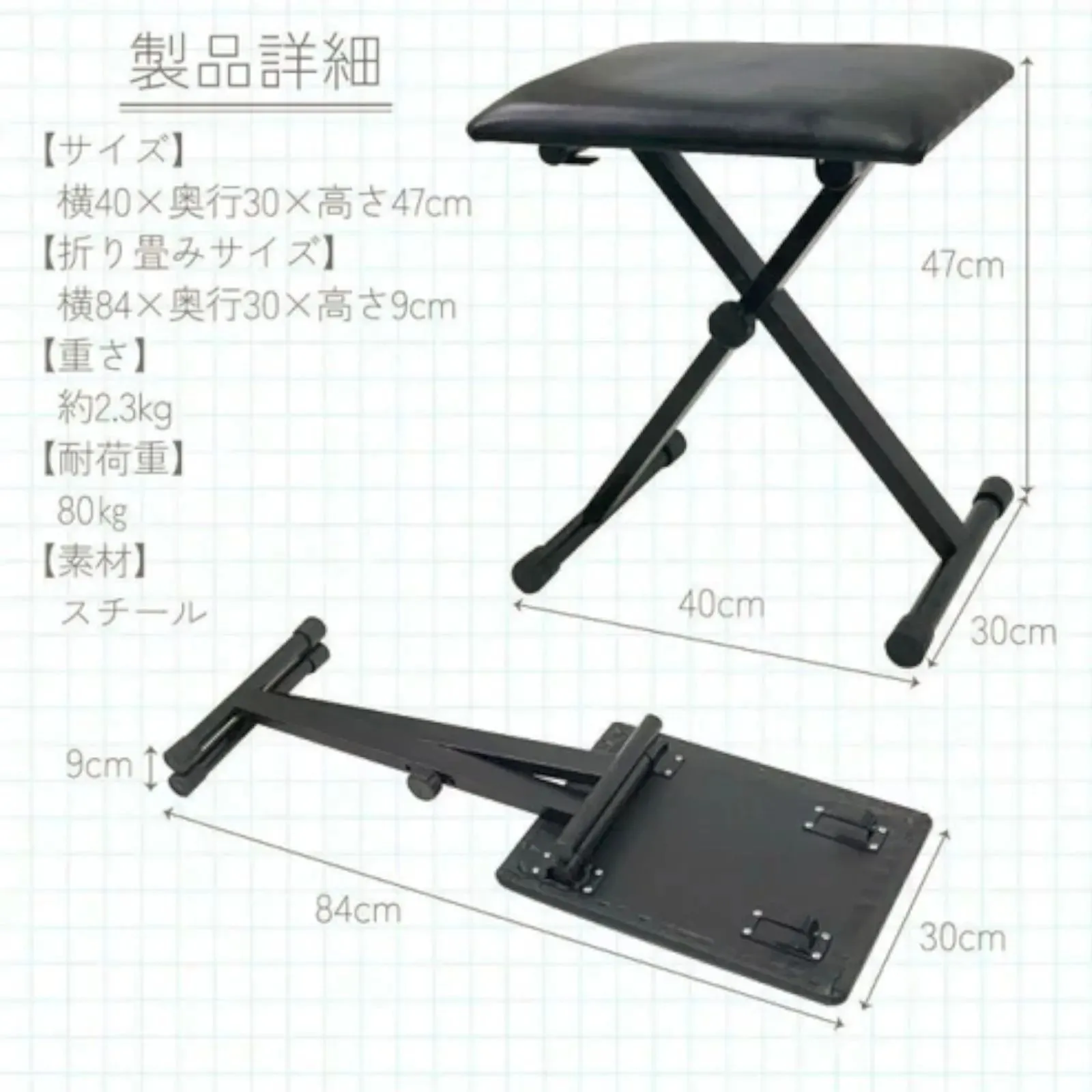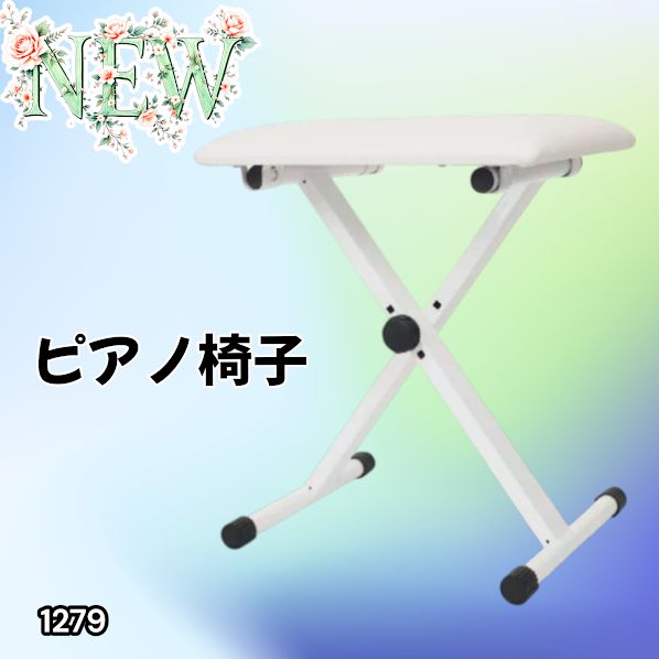 #1279 ピアノ キーボード イス ホワイト 椅子 折りたたみ 軽量 安定 高さ調節 3段階 ※北海道、沖縄本島、沖縄の離島、その他離島へは別途配送料有り