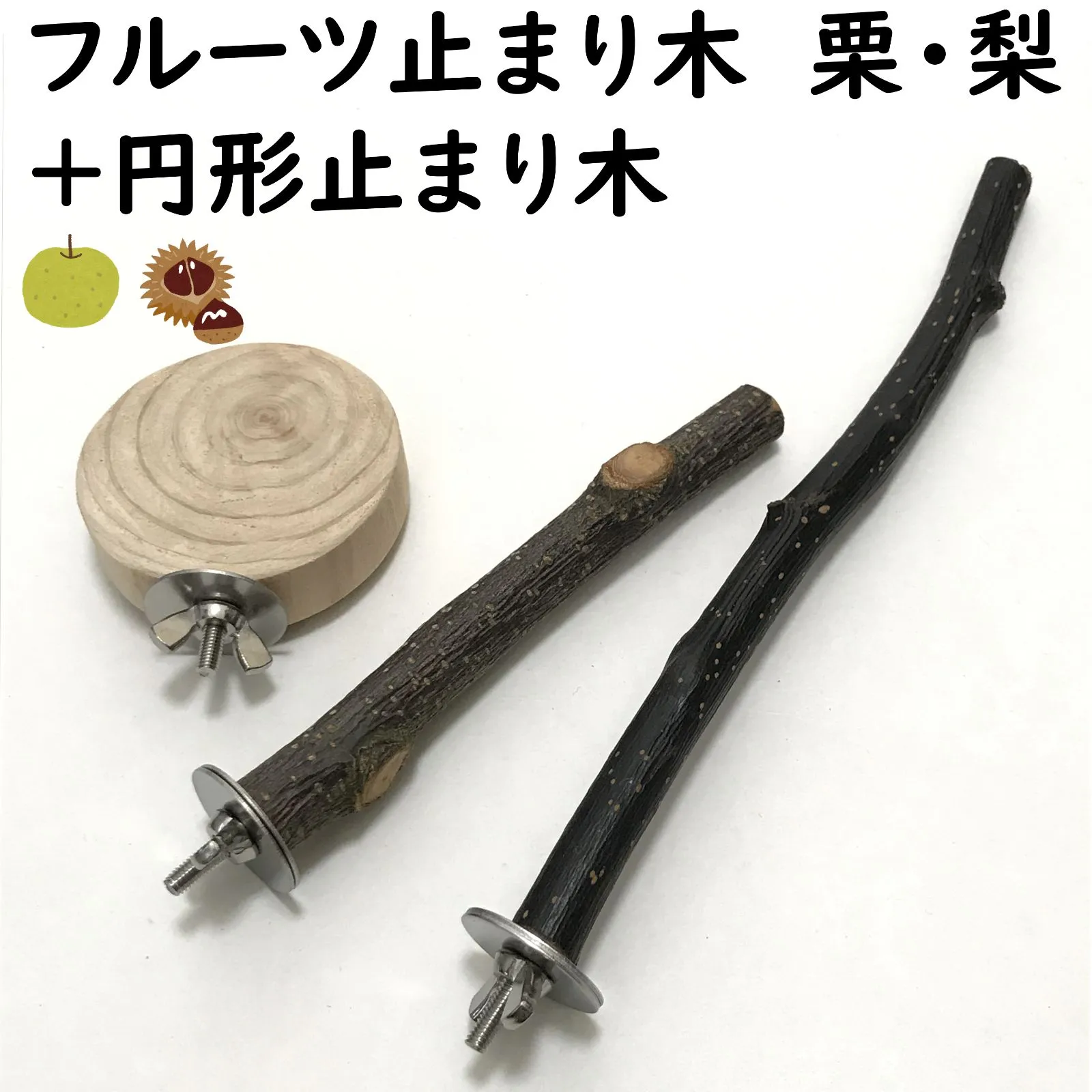 フルーツ止まり木 栗・梨+円形止まり木 インコ・小鳥用
