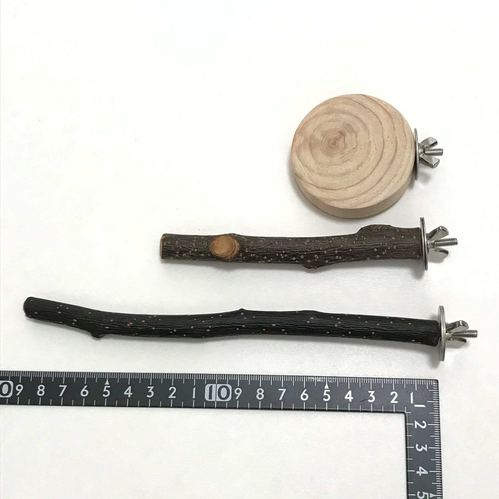 円形止まり木は杉製で、厚さが約1.5~2.5センチ、直径が約5~6センチとなります。