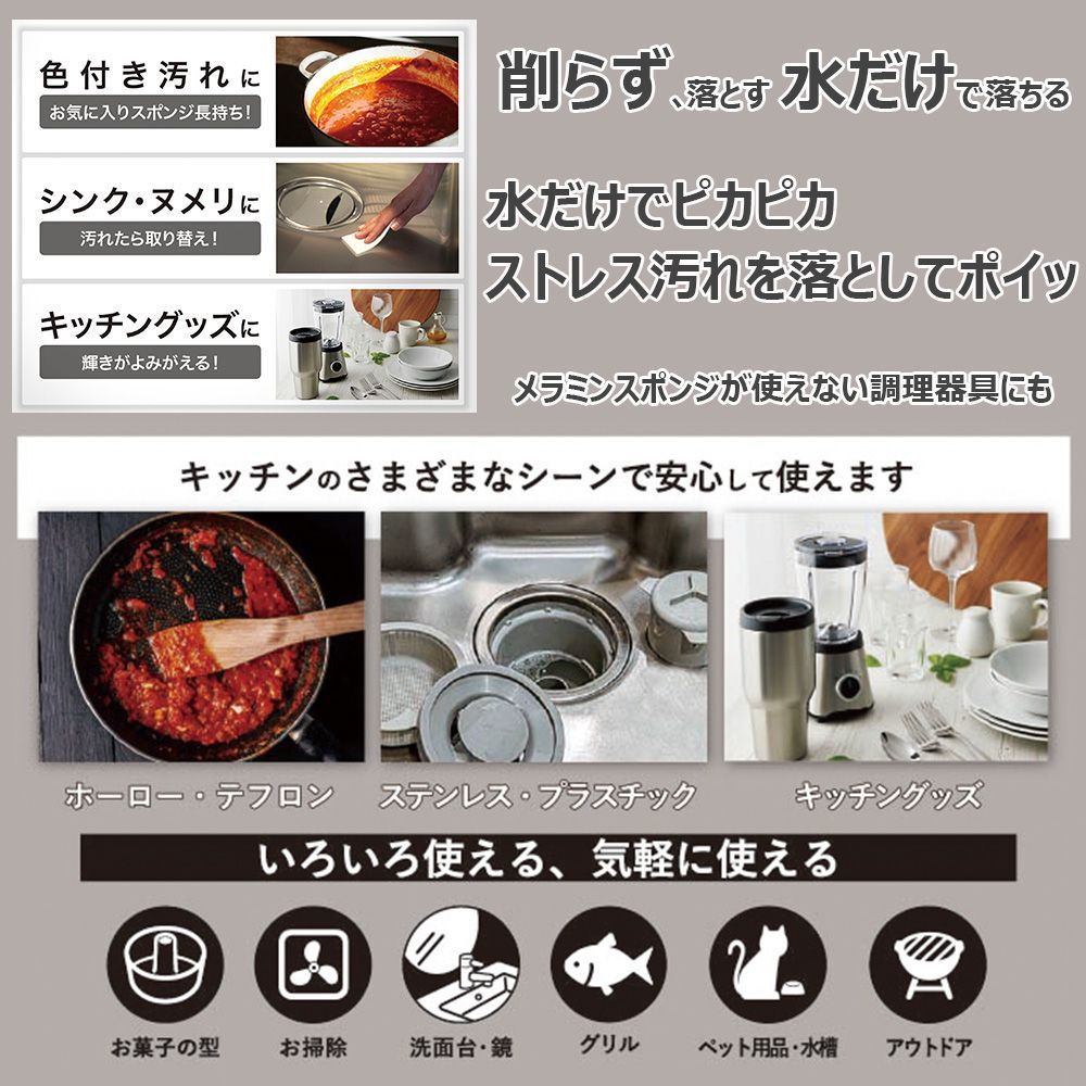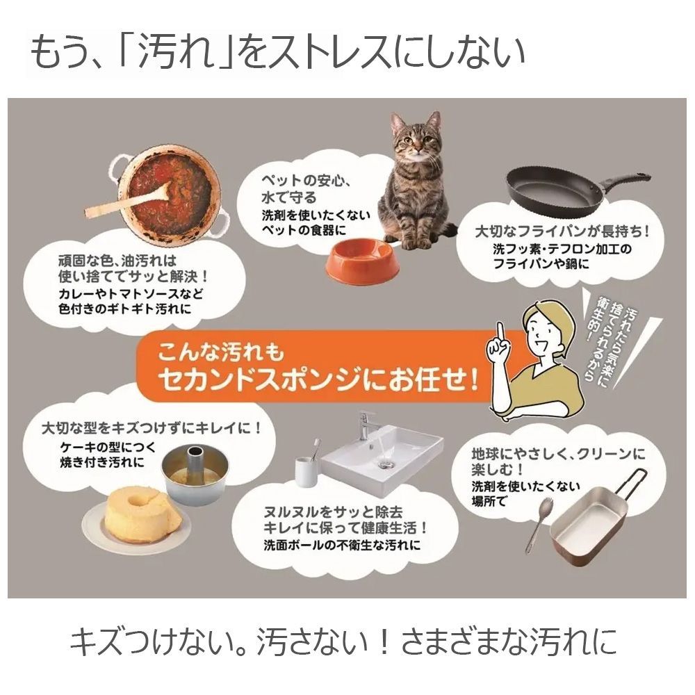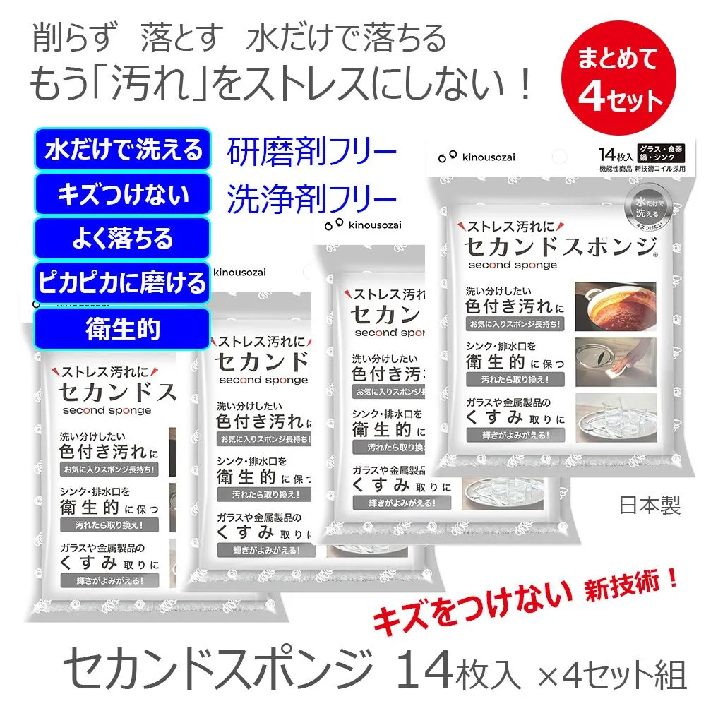機能素材 水だけでピカピカ 削らず落とす 新技術 キズつけない 使い捨て いろいろなものに使える 気軽に使える セカンドスポンジ 14枚入×4セット