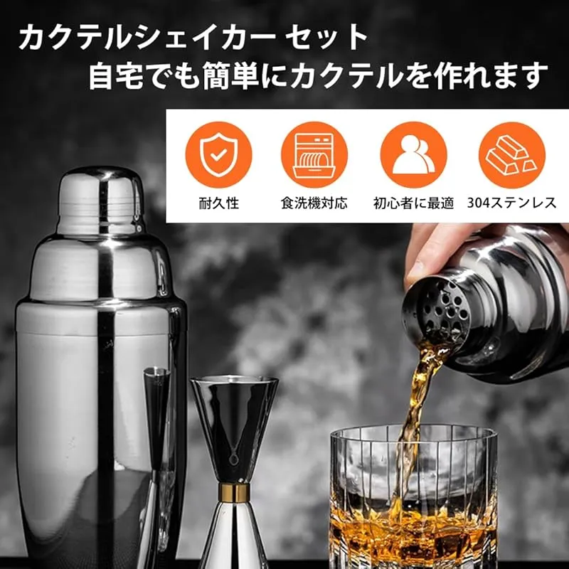 【快適なデザイン】:これは初心者向けのカクテル入門セットで、「カクテルを作るのは難しそうだ」と思っている方にぴったりです。必要な道具と図解説明がすべてそろっているので、迷うことなくスムーズに完成させることができます。防錆性に優れ、耐久性も高いため、清潔な環境で安心して長期間使い続けることができます。さらに、図文が豊富な説明書が付属しており、シェイクの方法やお手入れの仕方が簡単に理解できるように説明されているので、全く不安がないですよ!