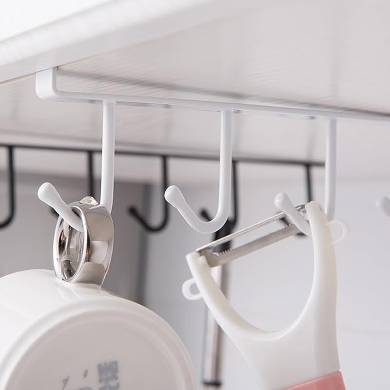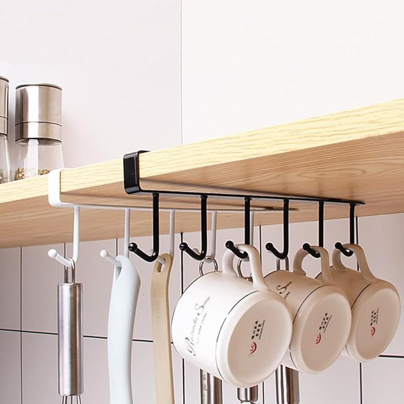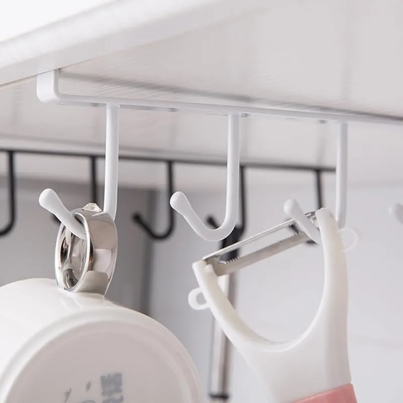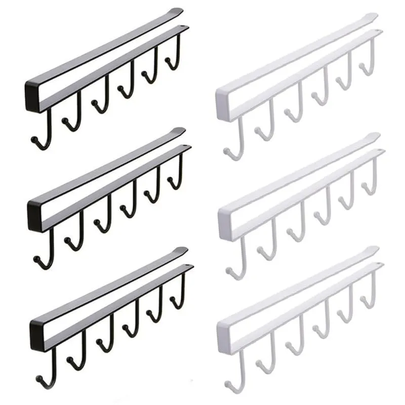 【新品】 DIFEIUKI 戸棚下 キッチンツール 6本セット 6連フック 差し込み式 カップハンガー 穴あけ不要 ネジ止め不要 便利 省スペース 吊りフック コート タオル 帽子掛け キャビネット 引っ掛け収納 多機能 収納フック