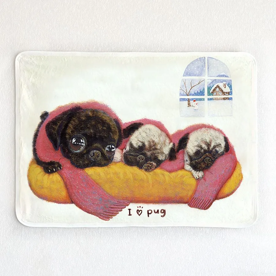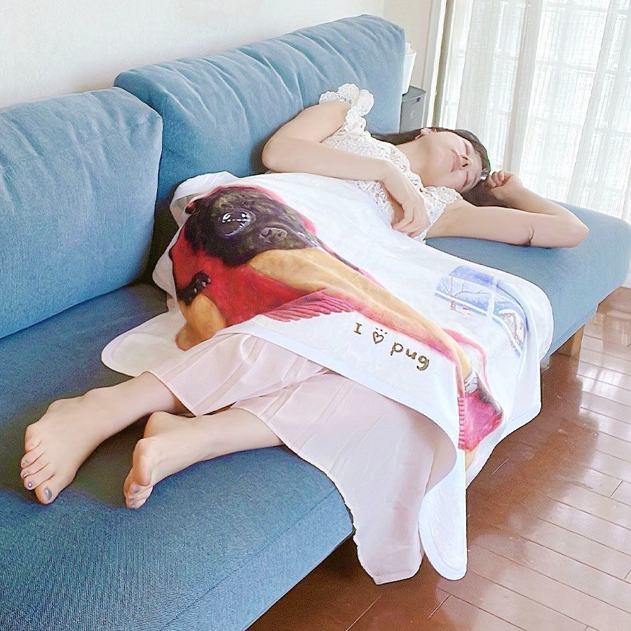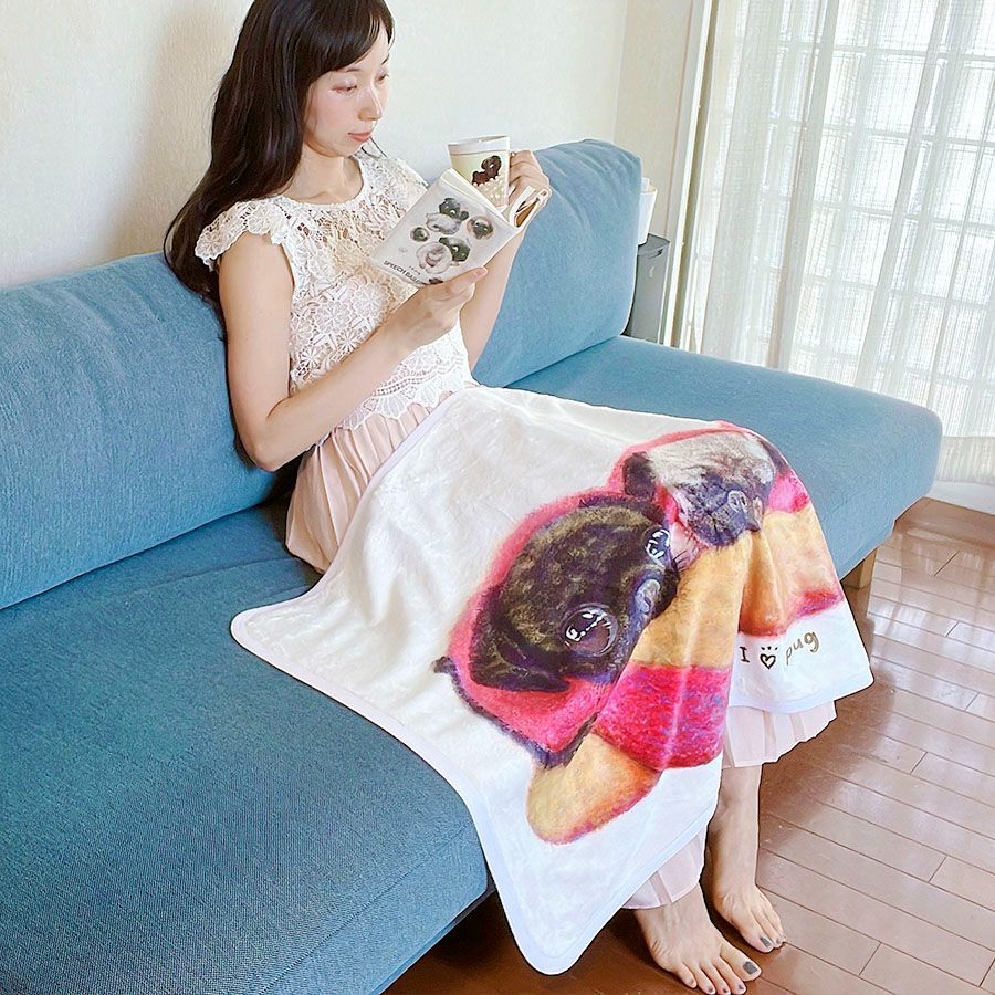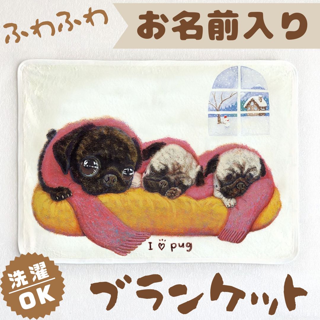 【パグ】お名前入りブランケット(ひざ掛け)🌟ラッピング対応🌟プレゼントにも♪