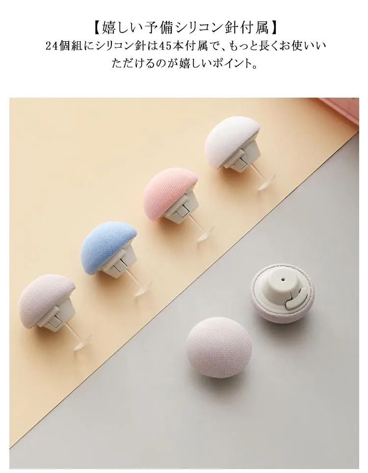 サイズについての説明:24個組内容:固定器24個(キノコ)+シリコンピン(透明針)45本+ステンレス針6本