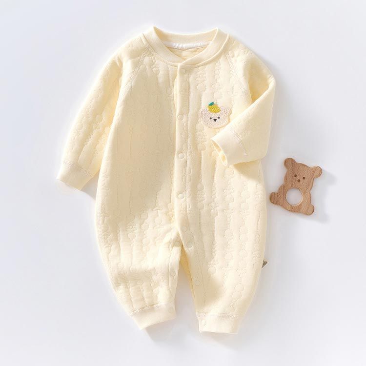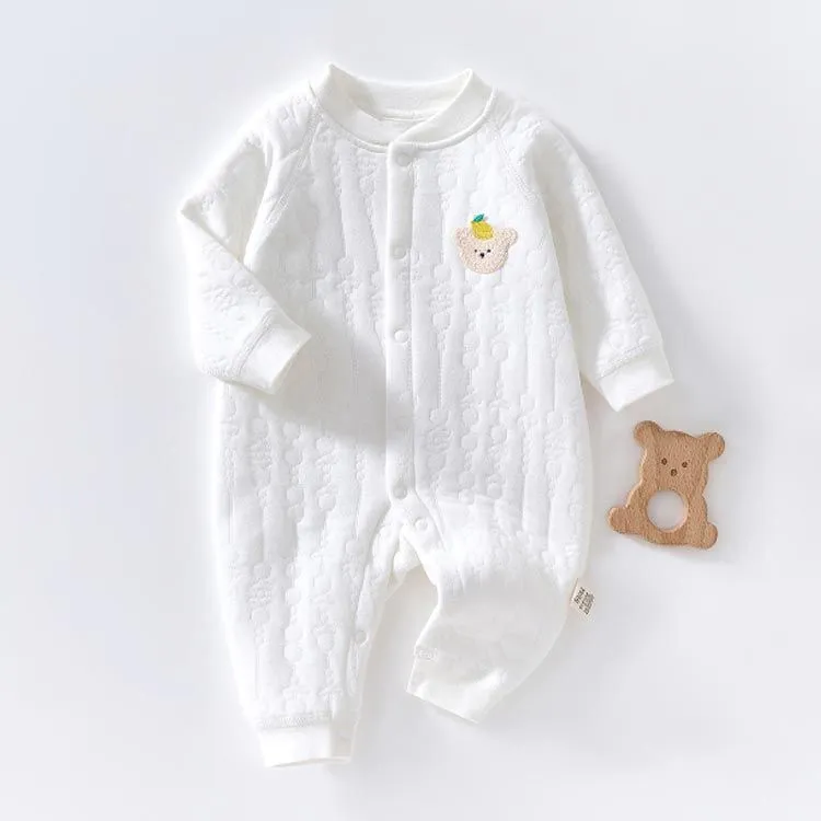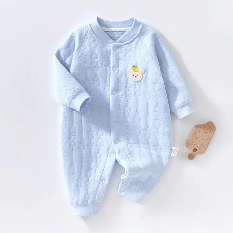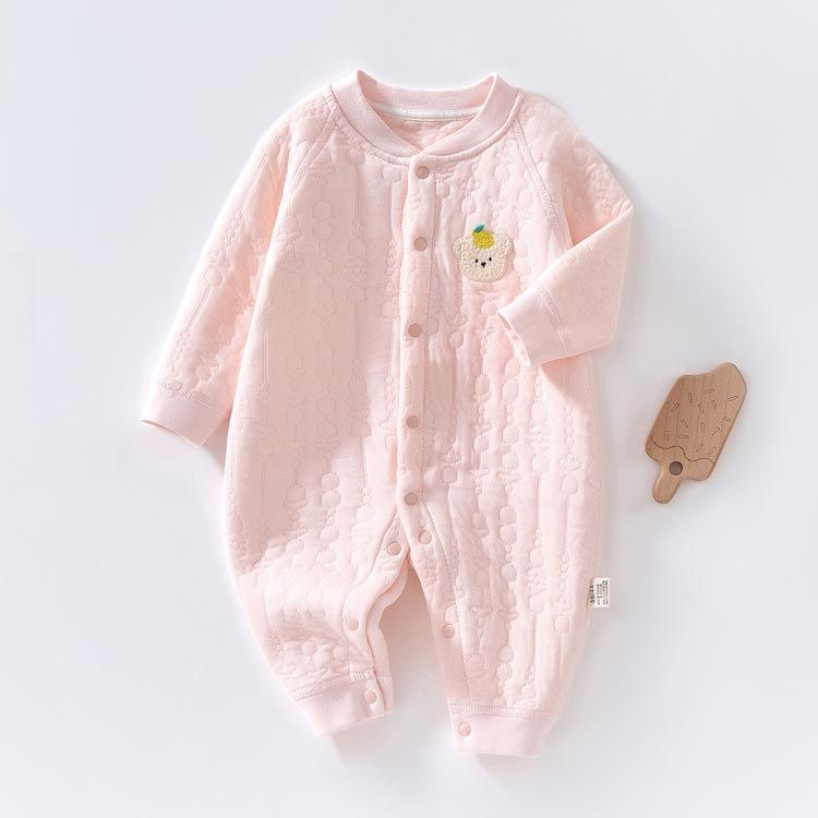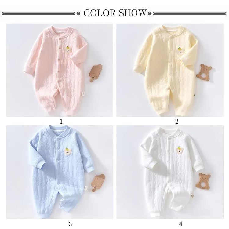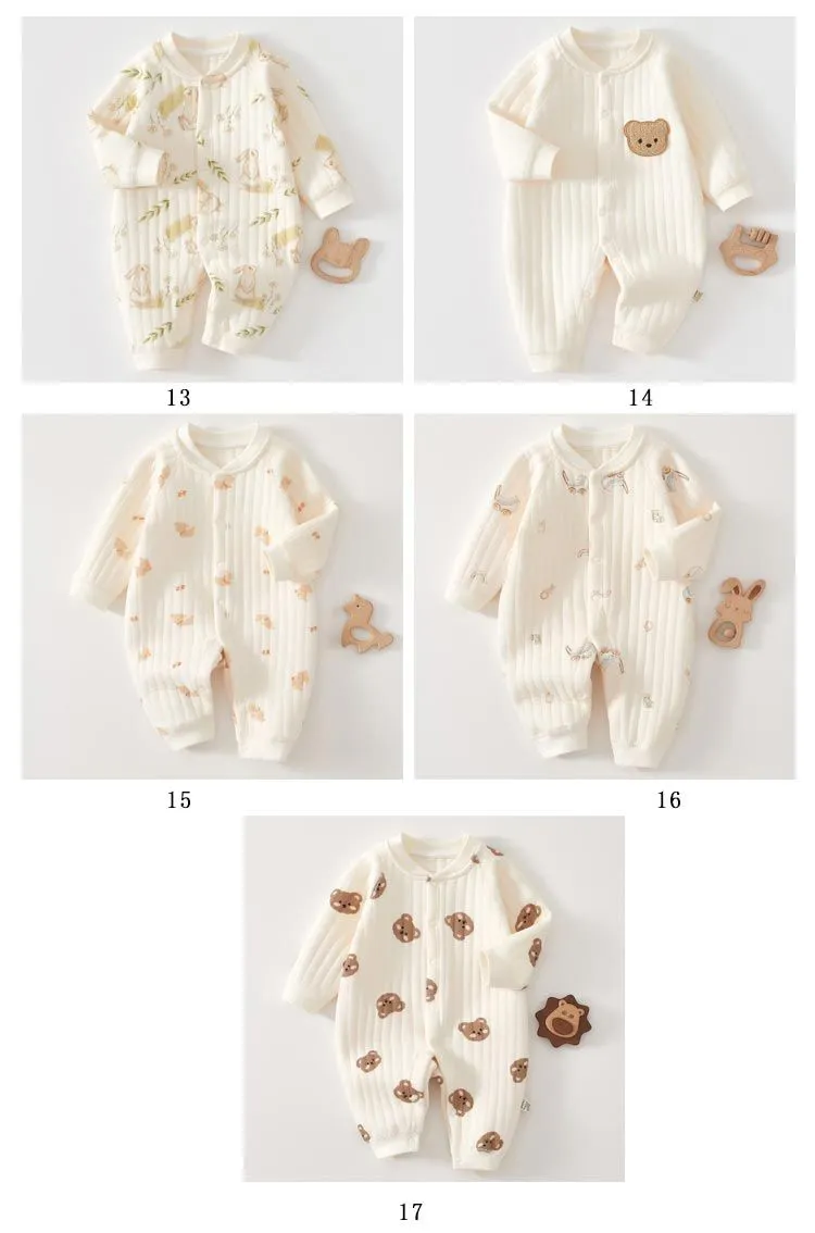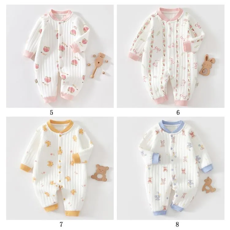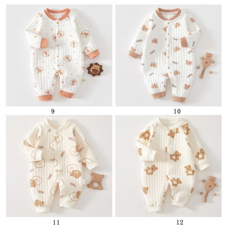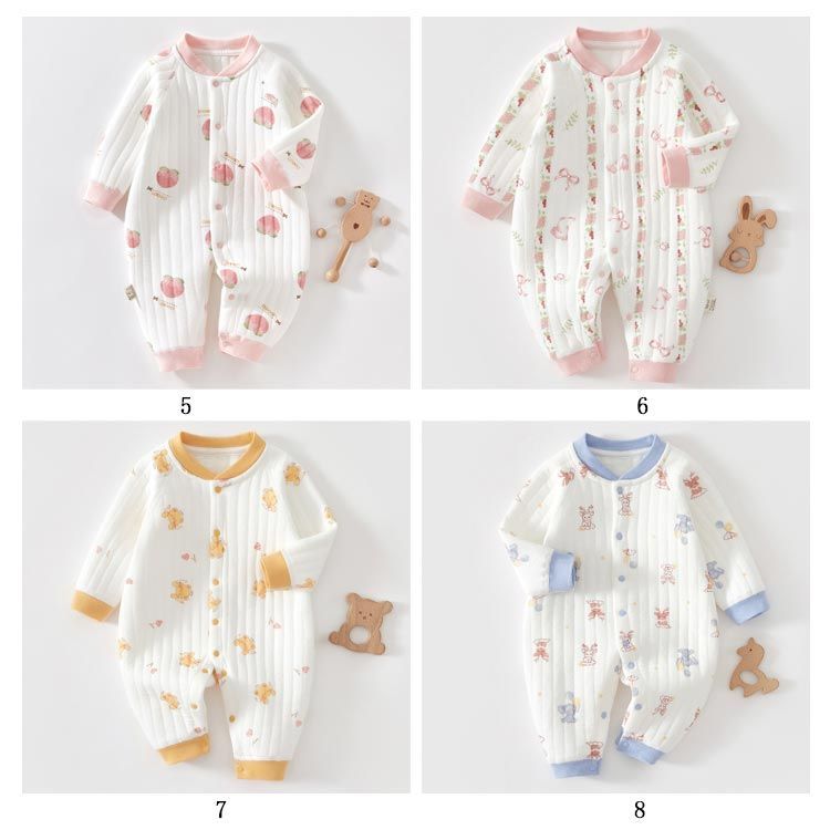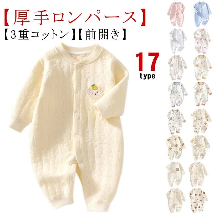ロンパース 長袖 厚手 ベビー服 男の子 女の子 秋 冬 春 赤ちゃん カバーオール 3重コットン 綿 あったか 新生児服 前開き スナップボタン くま ウサギ 桃 アニマル柄 おしゃれ かわいい 5#lulum068