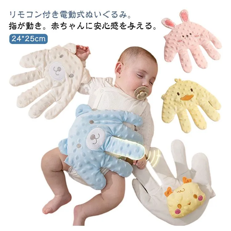 リモコン付き電動式ぬいぐるみ。指が動き。赤ちゃんに安心感を与える。