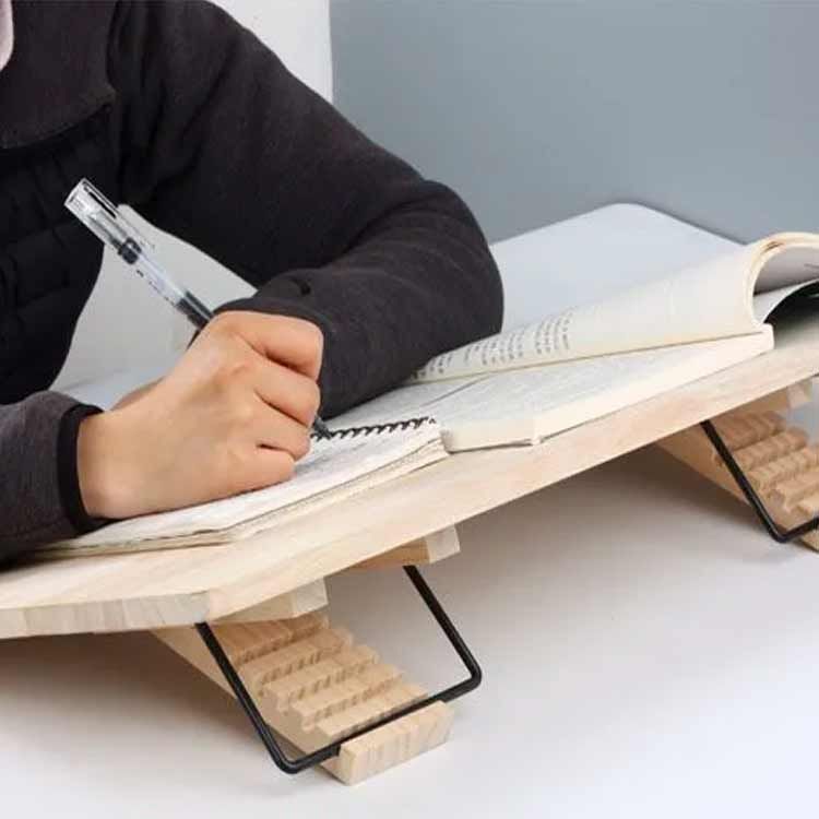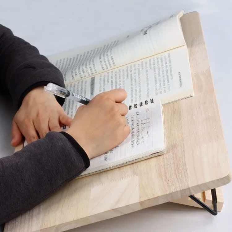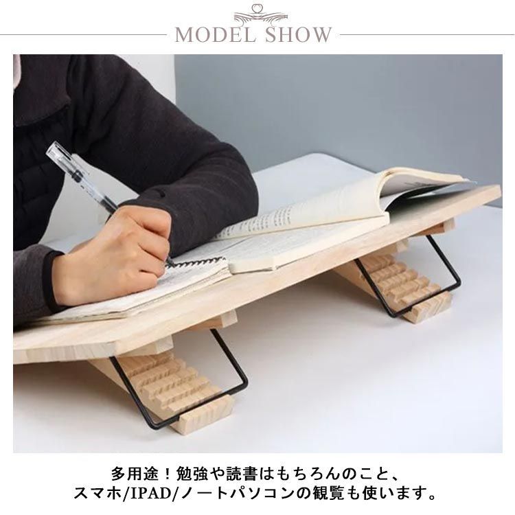 本立て・ブックスタンドにもなるので教科書などを置いて勉強したり、書き写したりするのに大変便利です。らくらく読書。お好みの角度に調節可能。