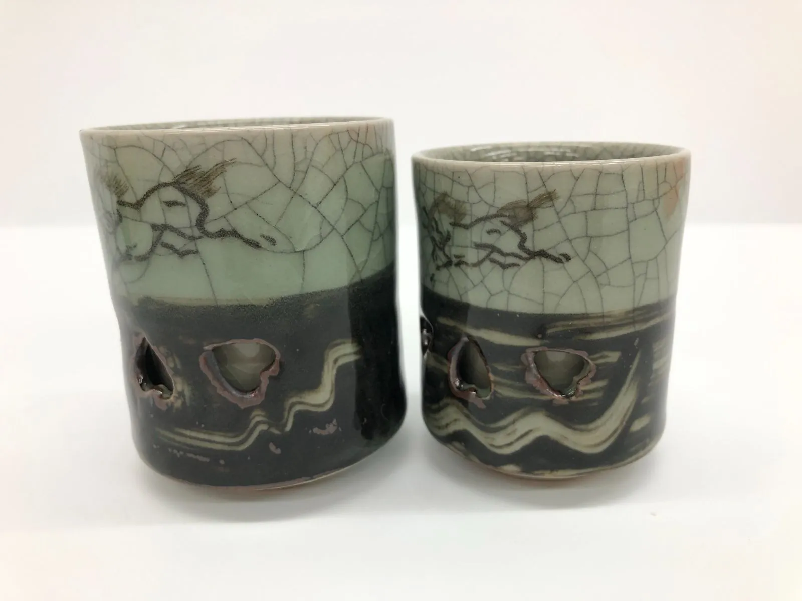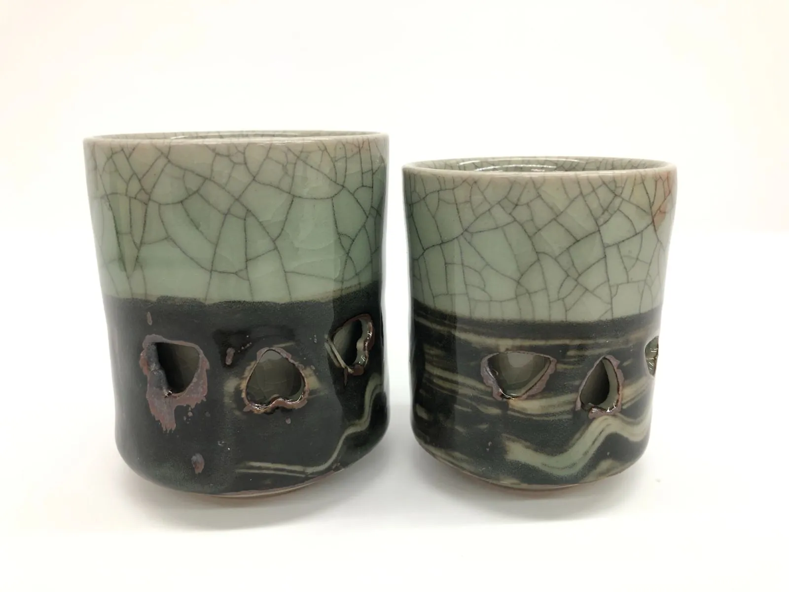 【サイズ】 大 口径:約8㎝ 高さ:約8.3㎝ 小 口径:約7㎝ 高さ:約7.5㎝ (素人採寸ですので多少の誤差はご了承ください。)