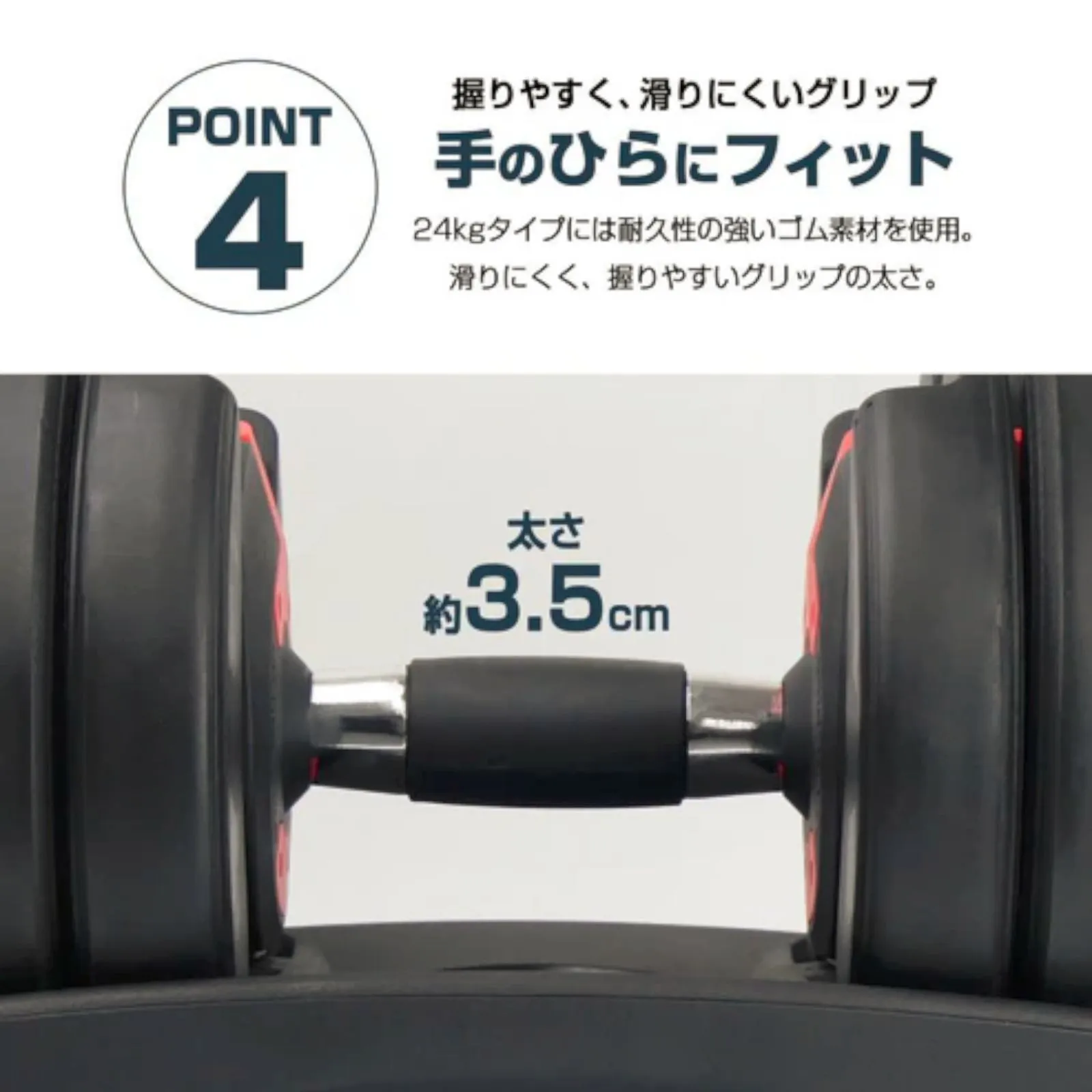 【かんたん重量変更】 5秒で変更できる可変式ダンベル!24kg2個セットタイプです。 左右のダイヤルを回して設定したい数値に調整できます。 そのまま引き上げると設定した数値の重さのダンベルになります! 筋トレ中の無駄な時間がなくなります!