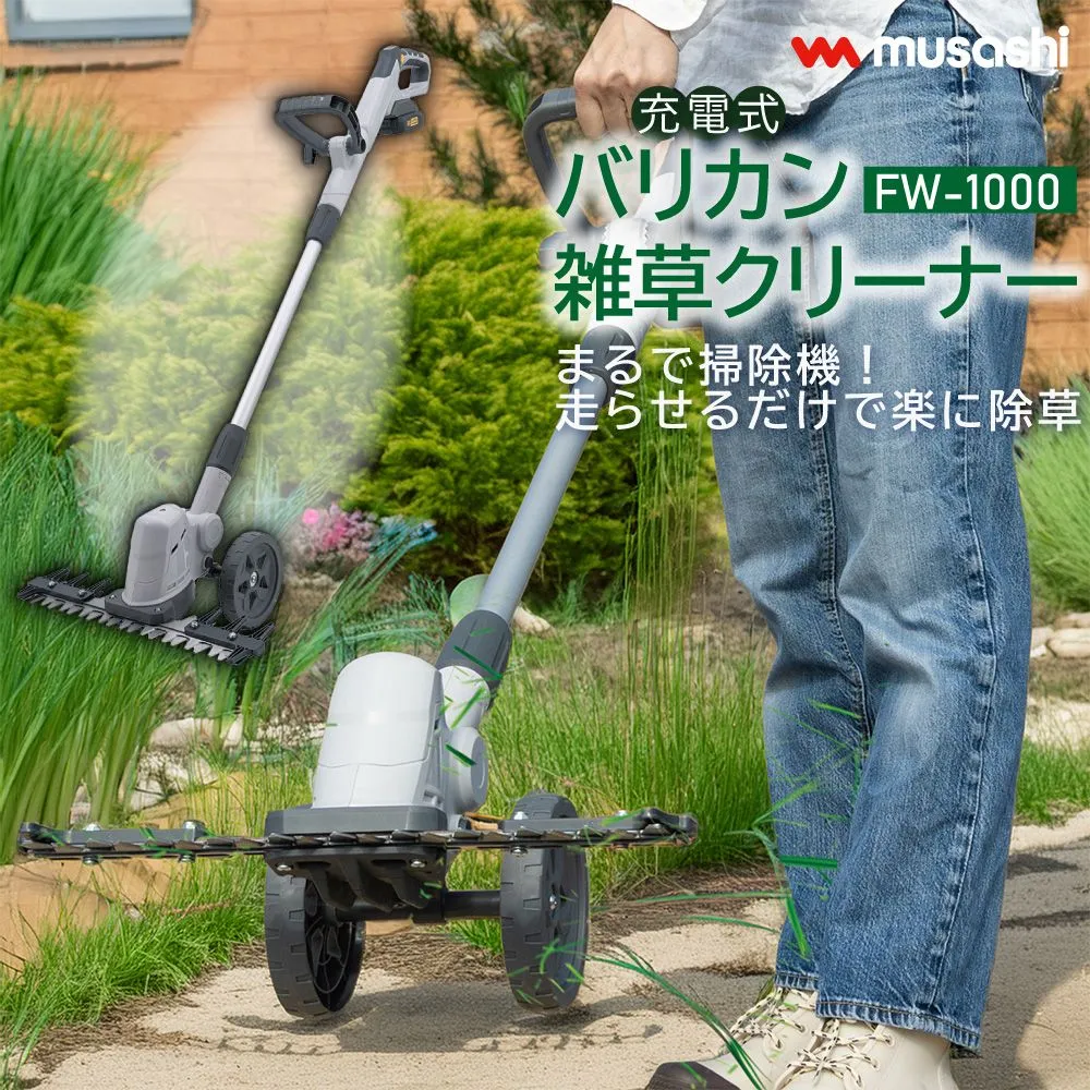 【送料無料】雑草クリーナー まるで掃除機! FW-1000 充電式 バリカン 草抜き 軽い 駆除 草刈り機 カッター刈り込み 大容量 バッテリー 安全ガード ハンドル ガーデニング 園芸 ムサシ MUSASHI 対応