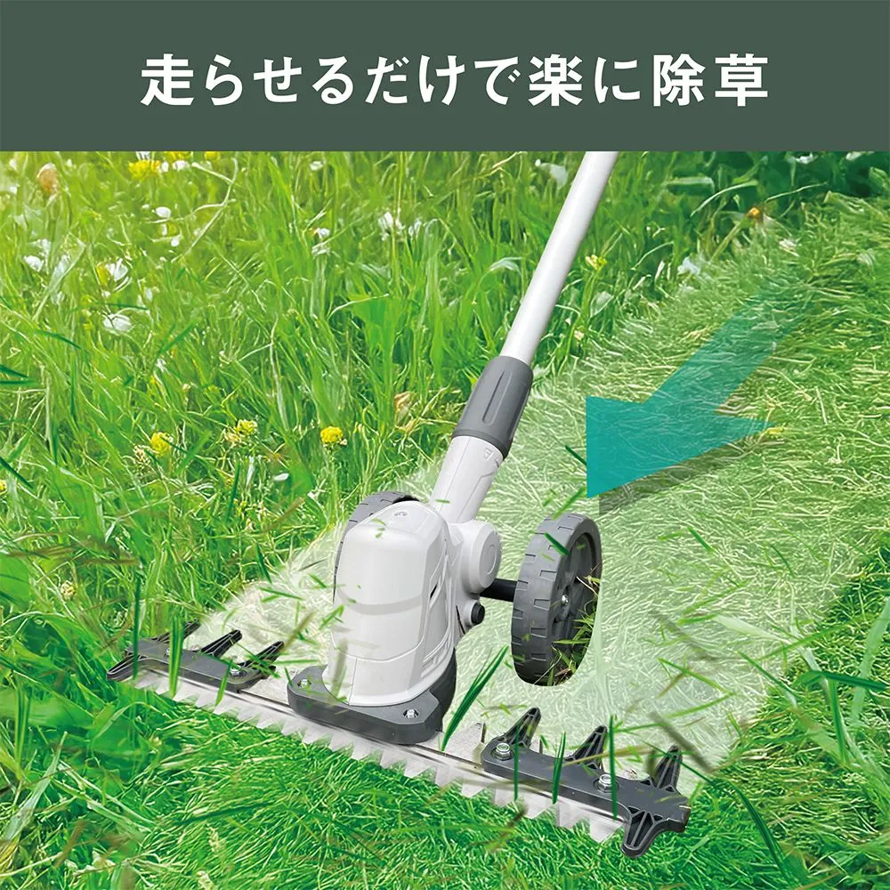 ■重量 約160g 走らせるだけで楽に除草 大きい車輪で軽い操作感、凸凹道でもスムーズに動かせます。 雑草に覆われた広い場所を掃除機のようにスイスイ走らせるだけで楽に除草。 充電式でコードレスだから電源や取り回しを気にせずどこでも使用可能です。