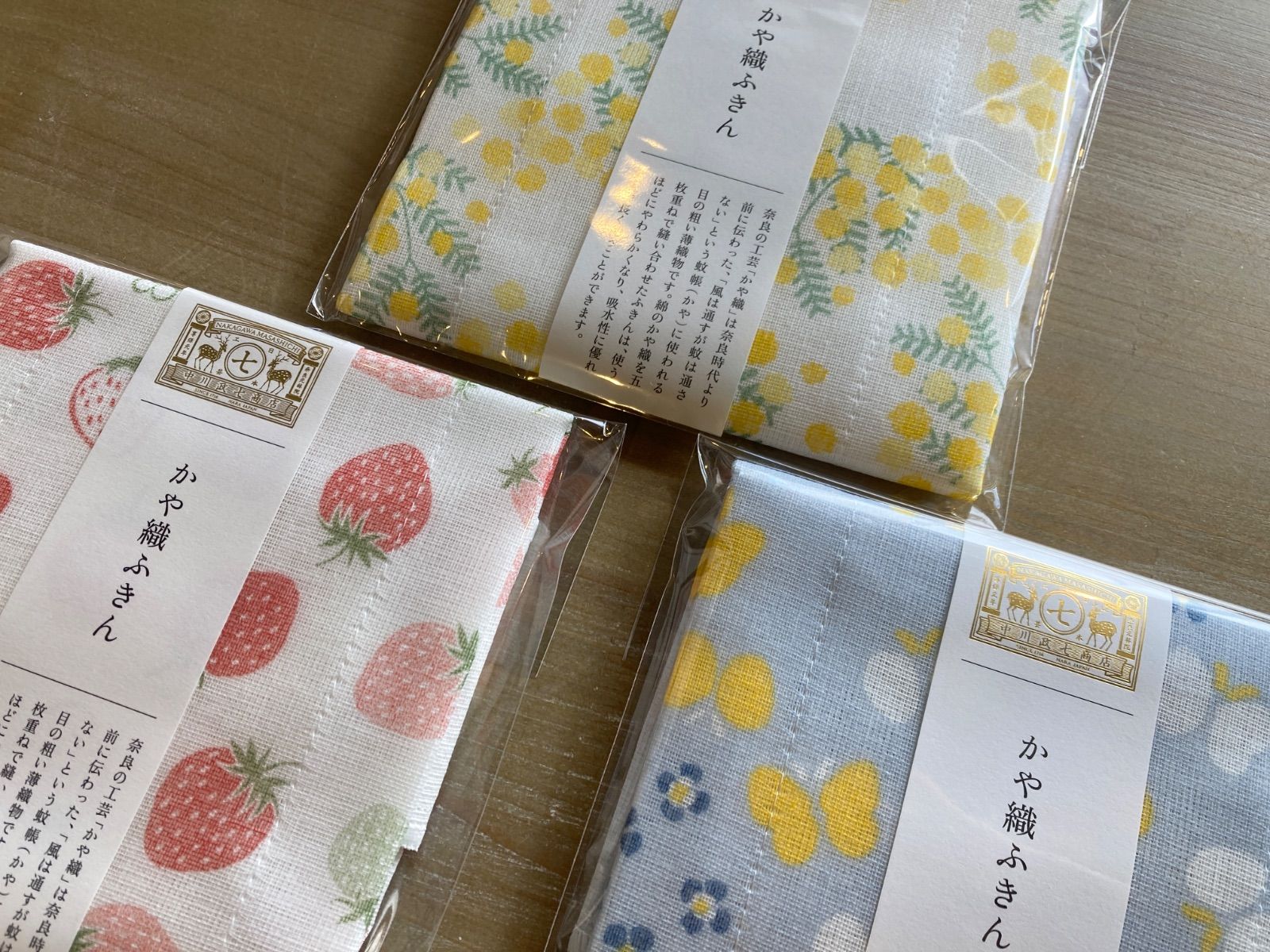 蚊帳ふきん3枚セット いちご、ミモザ、蝶々