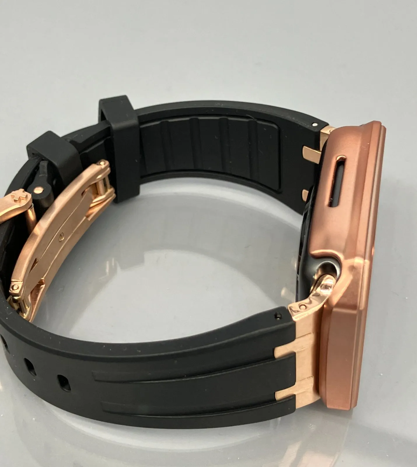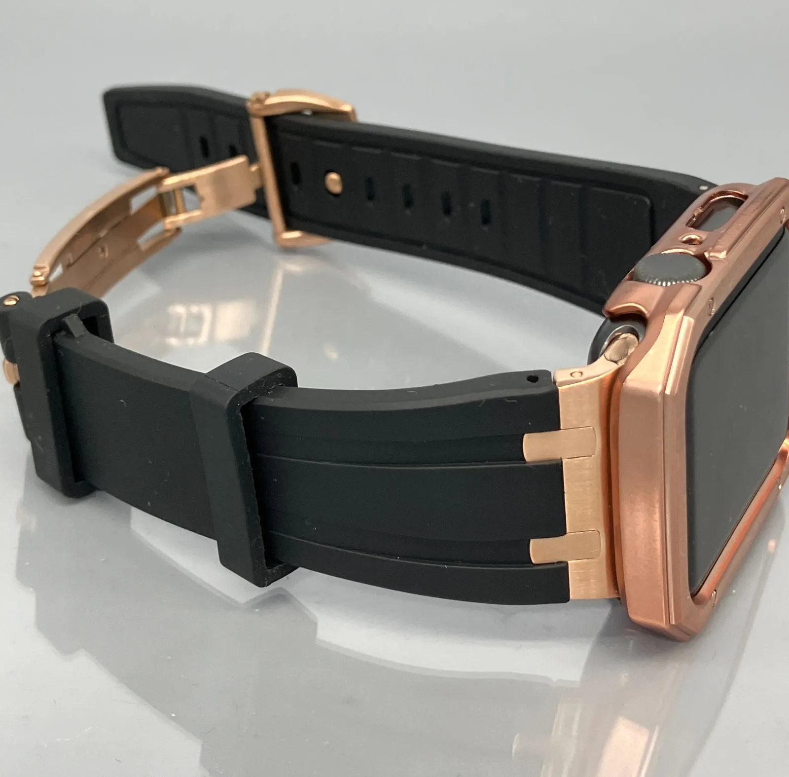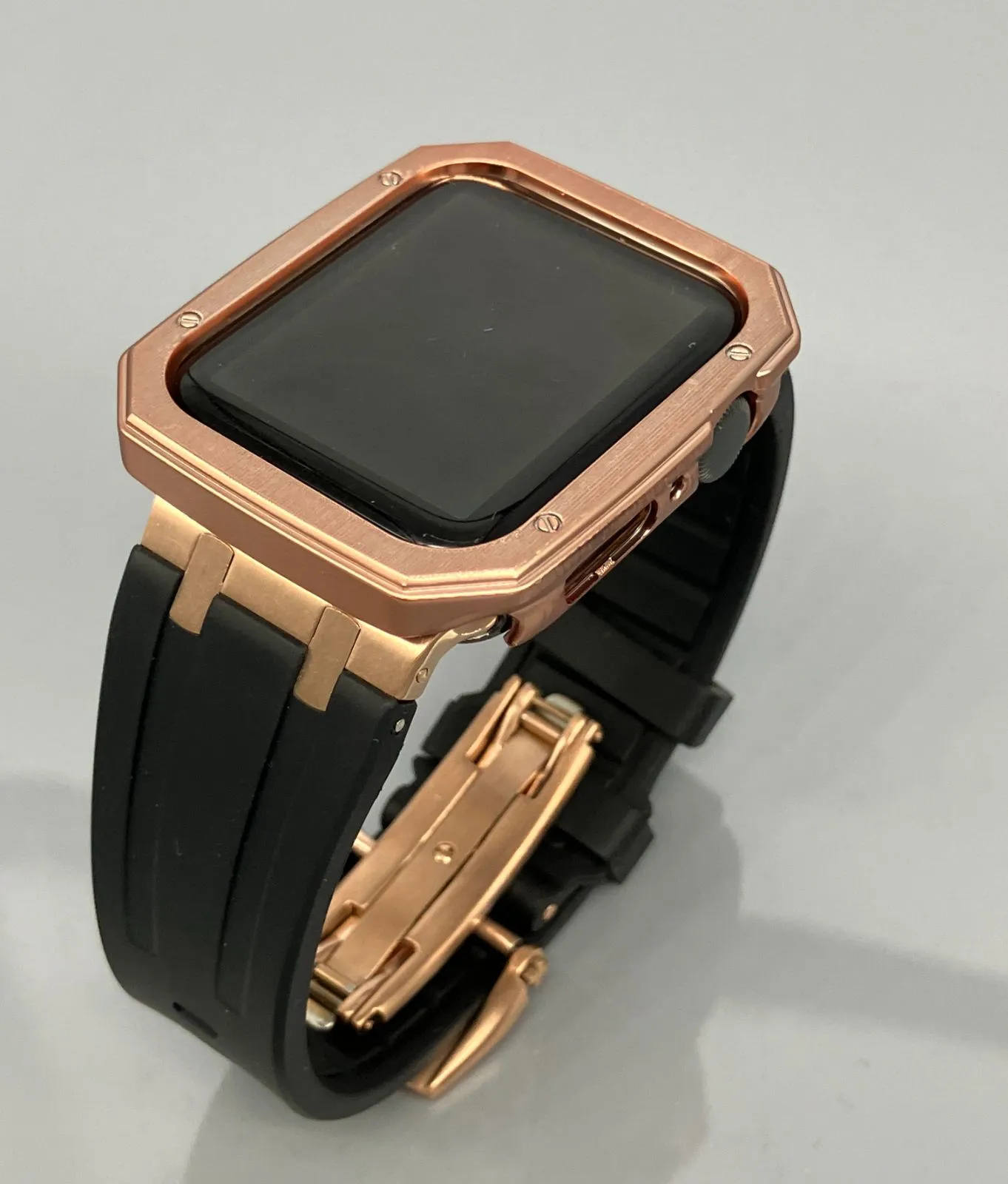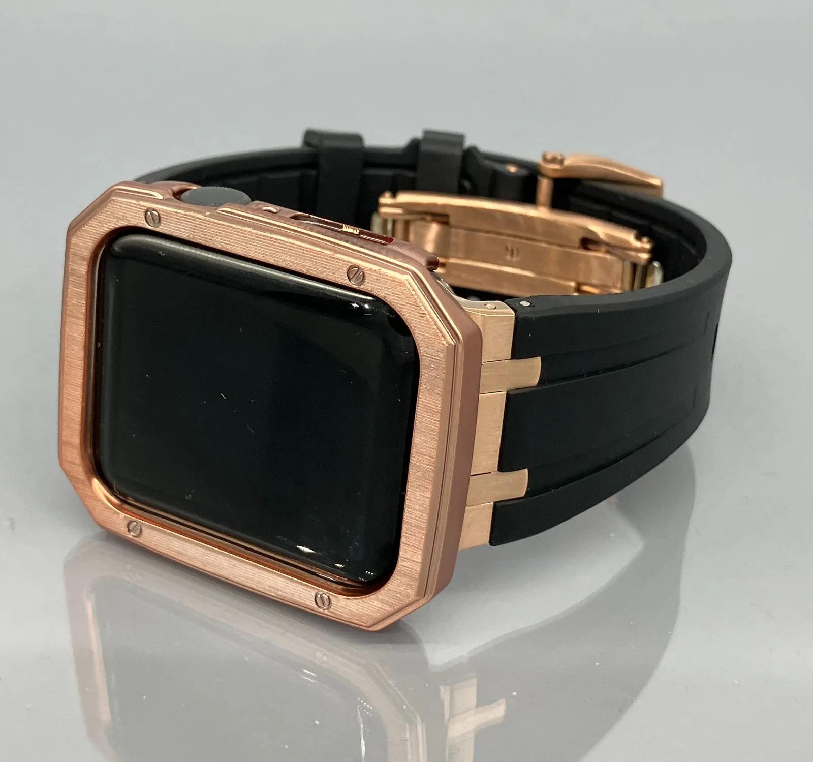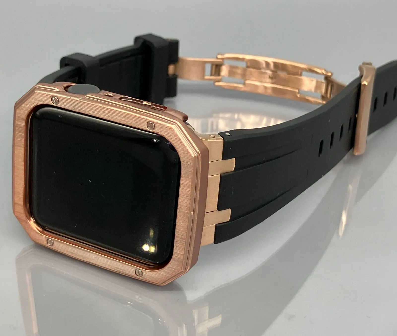 GimelZayinセット 4スクリュー ブラック ローズゴールド ラバーベルト アップルウォッチバンド ultra ウルトラ ケース カバー メンズ レディース 40mm 41mm 44mm 45mm 49mm Apple Watch バンド