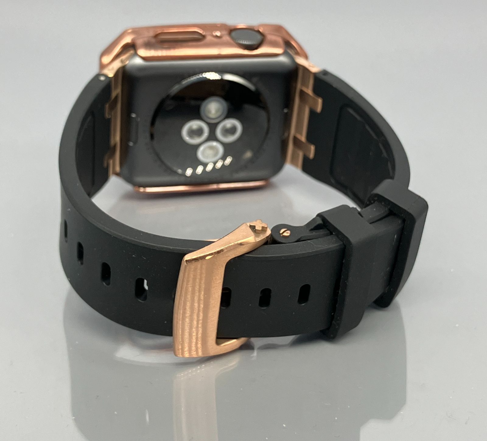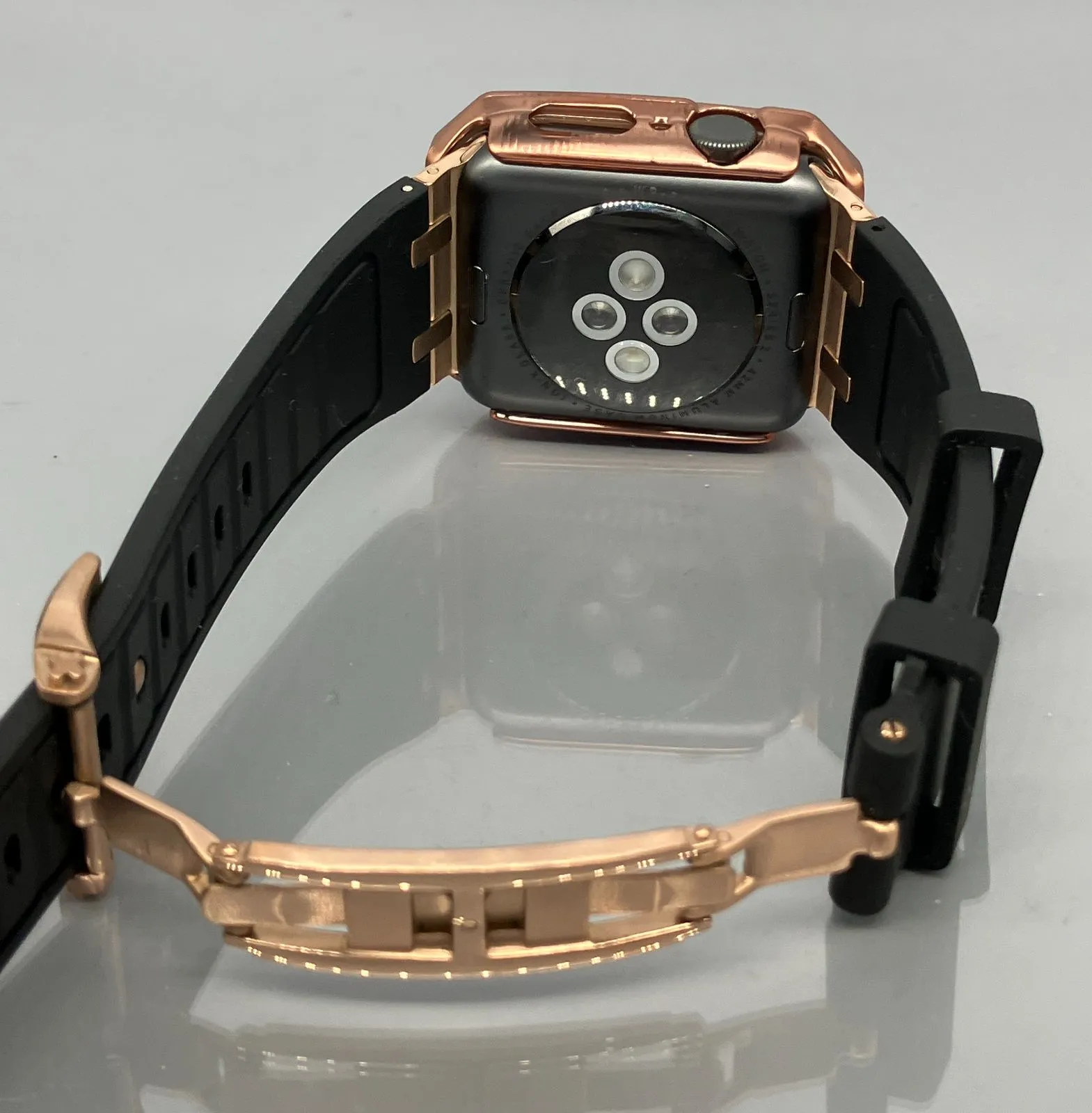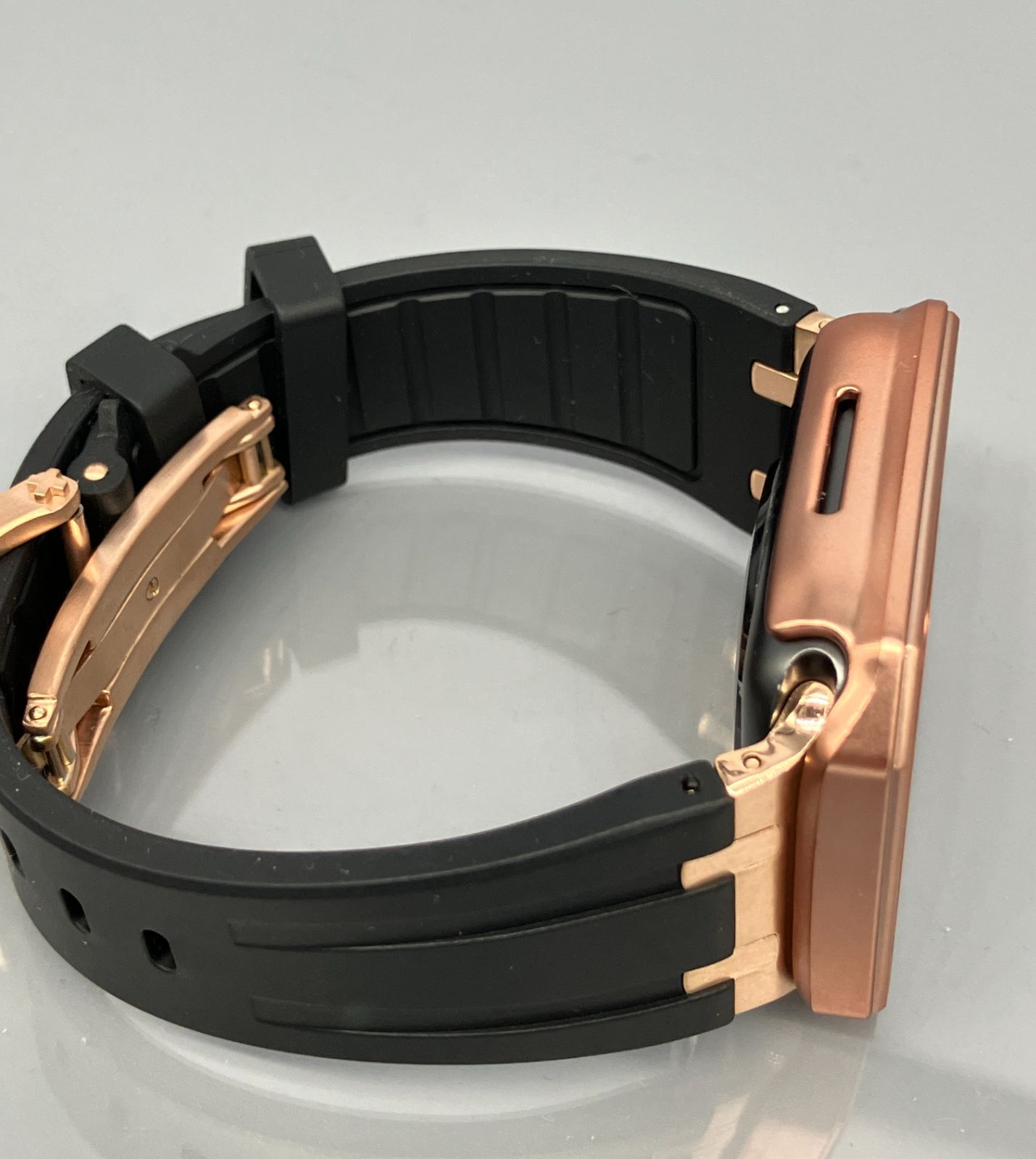 ★ゴージャス感があるカスタムされたApple Watchのベルトです。金属部分は全て高級素材の316Lステンレススチールとバンドと一体型にした最新のバンドになります。防水性能もありボリューム感やごつさ等、迫力あるデザイン。バックルは別注でカスタムされた強化型になります。