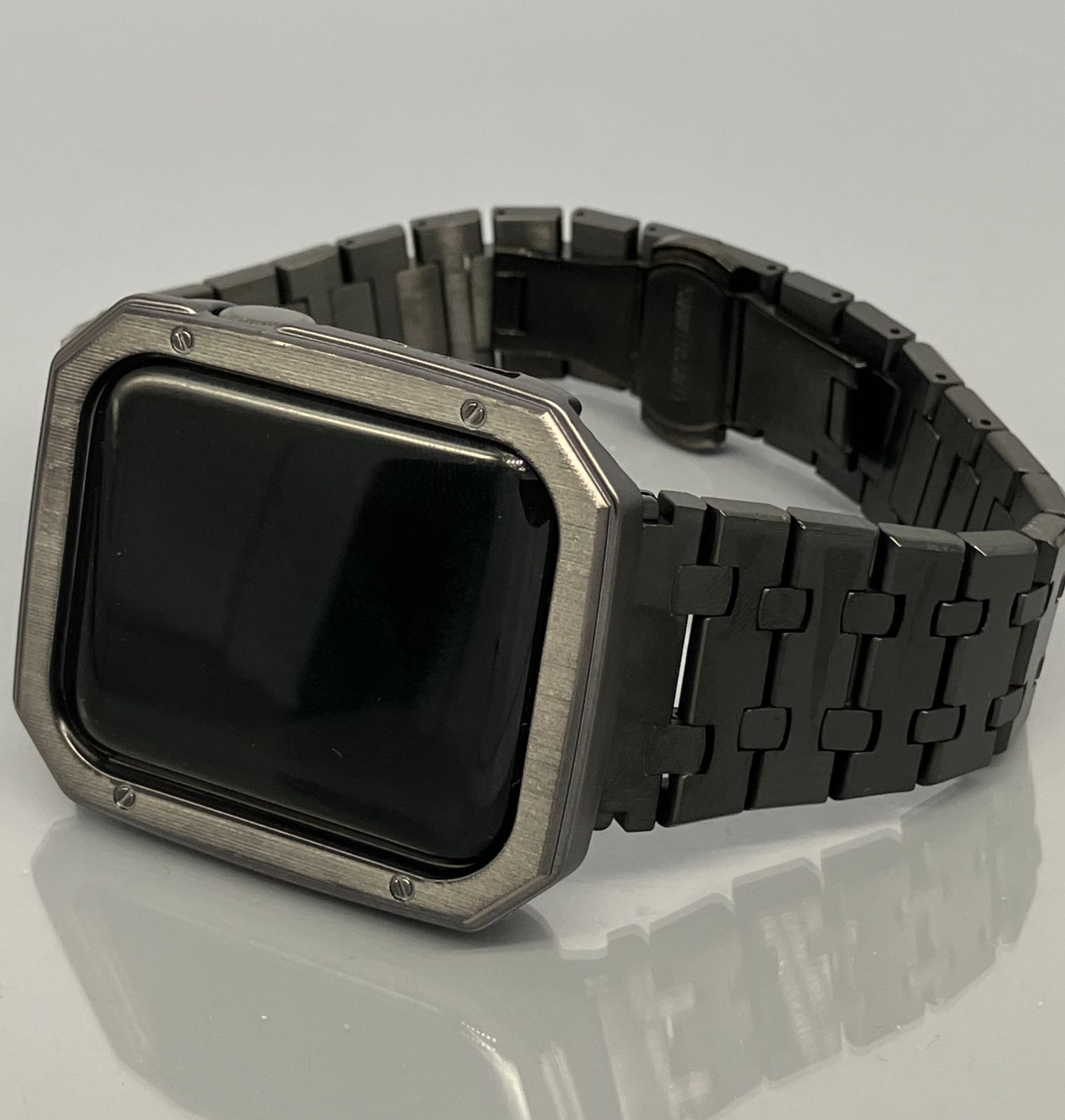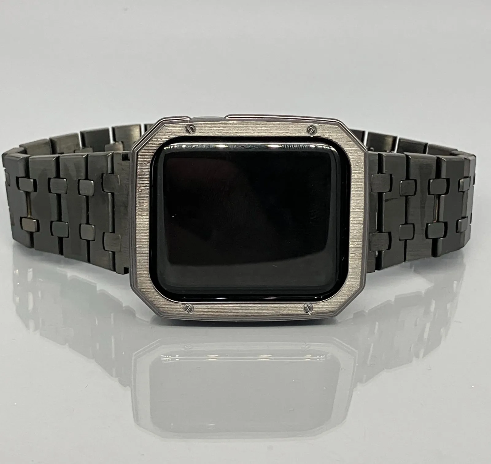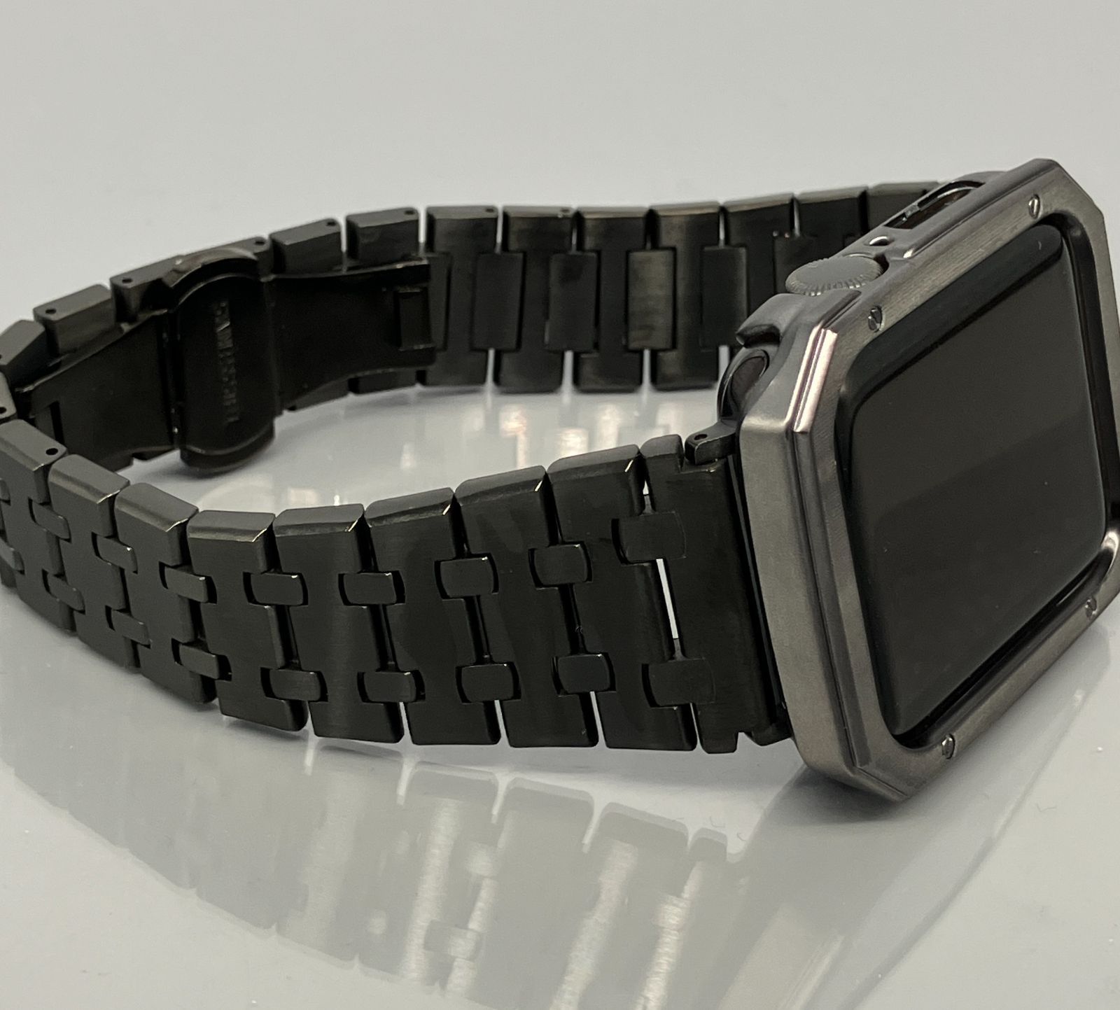 GimelZayinセット 4スクリュー鏡面 ブラック ステンレス アップルウォッチバンド ultra ウルトラ ケース カバー メンズ レディース 40mm 41mm 44mm 45mm 49mm Apple Watch バンド
