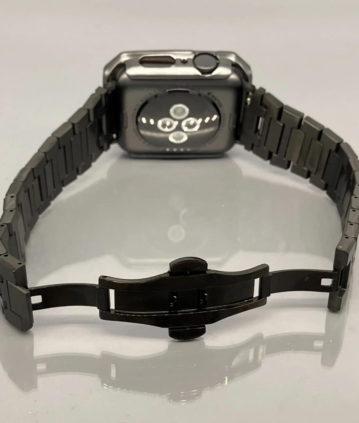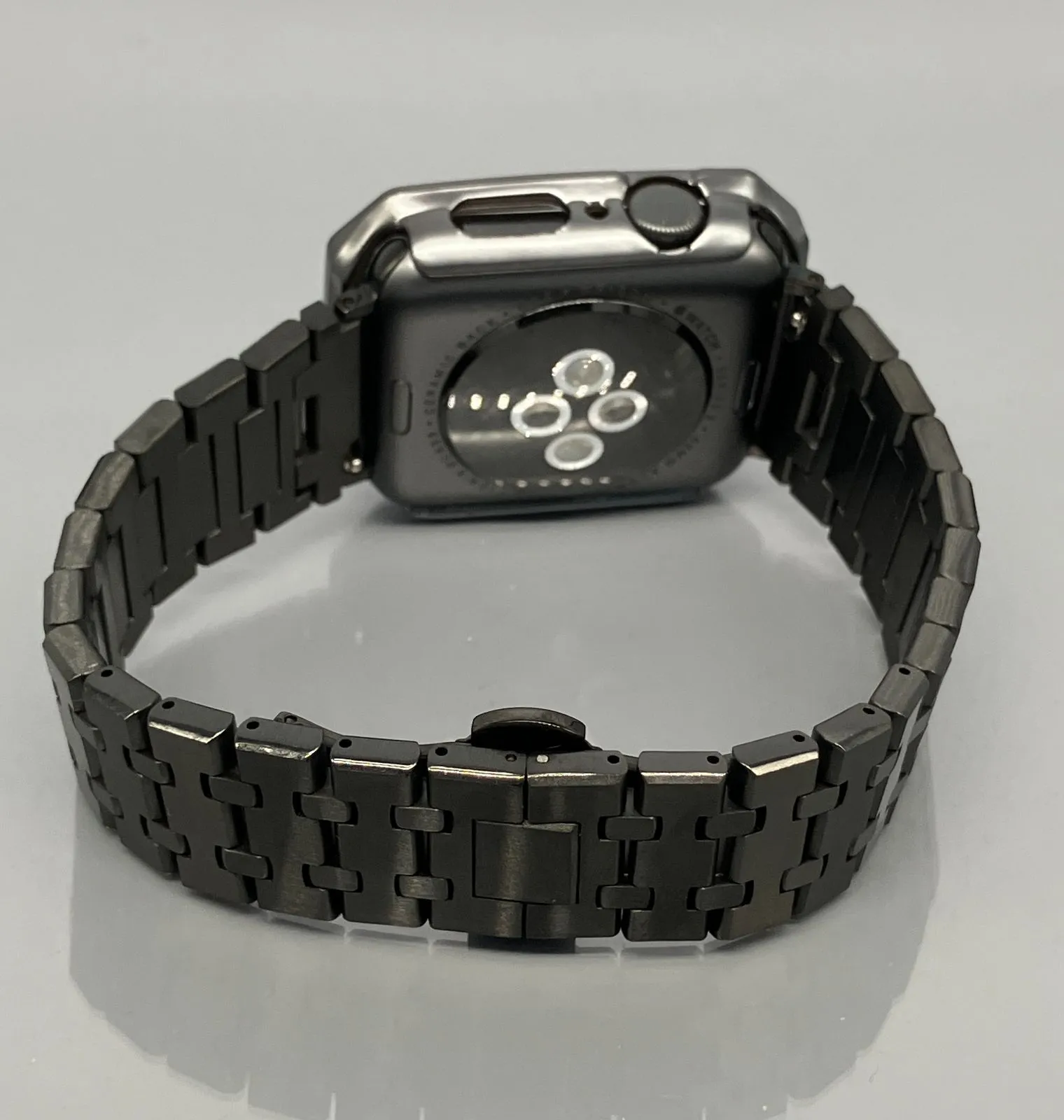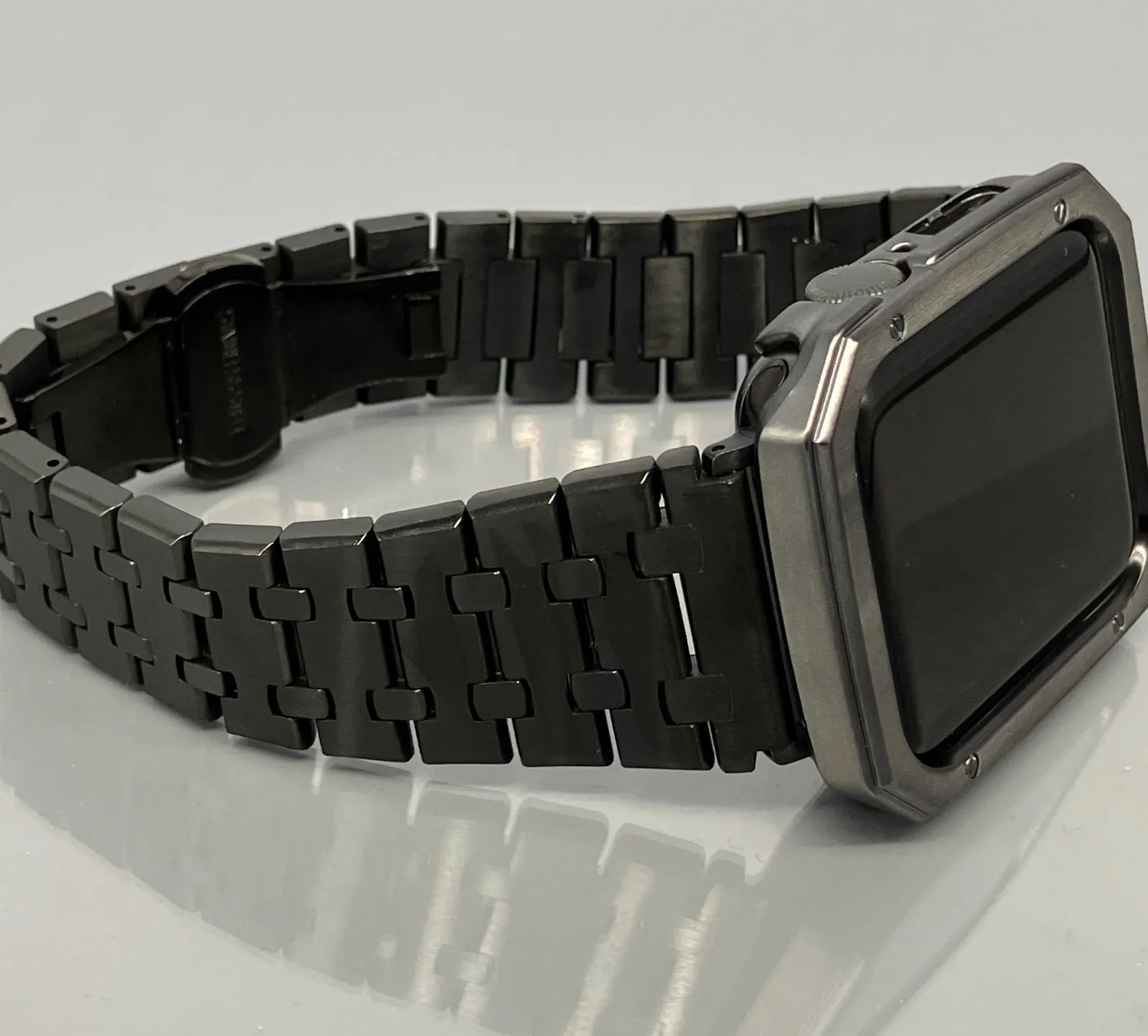 GimelZayinセット 4スクリュー鏡面 ブラック ステンレス アップルウォッチバンド ultra ウルトラ ケース カバー メンズ レディース 40mm 41mm 44mm 45mm 49mm Apple Watch バンド
