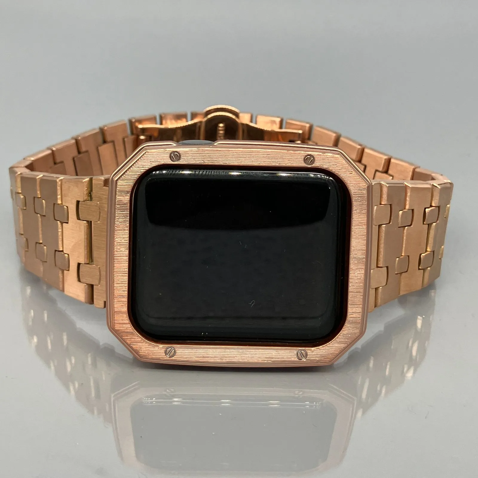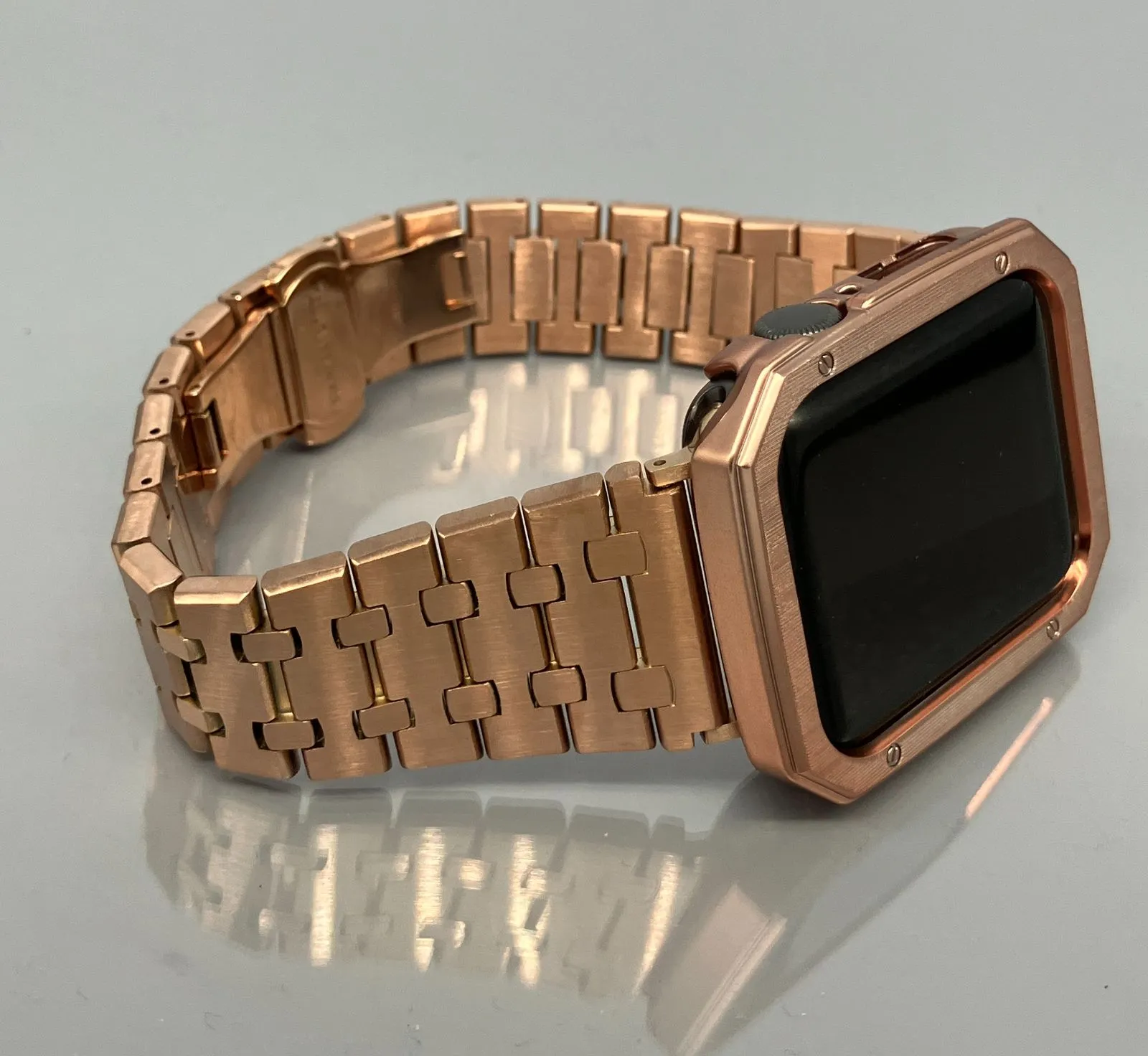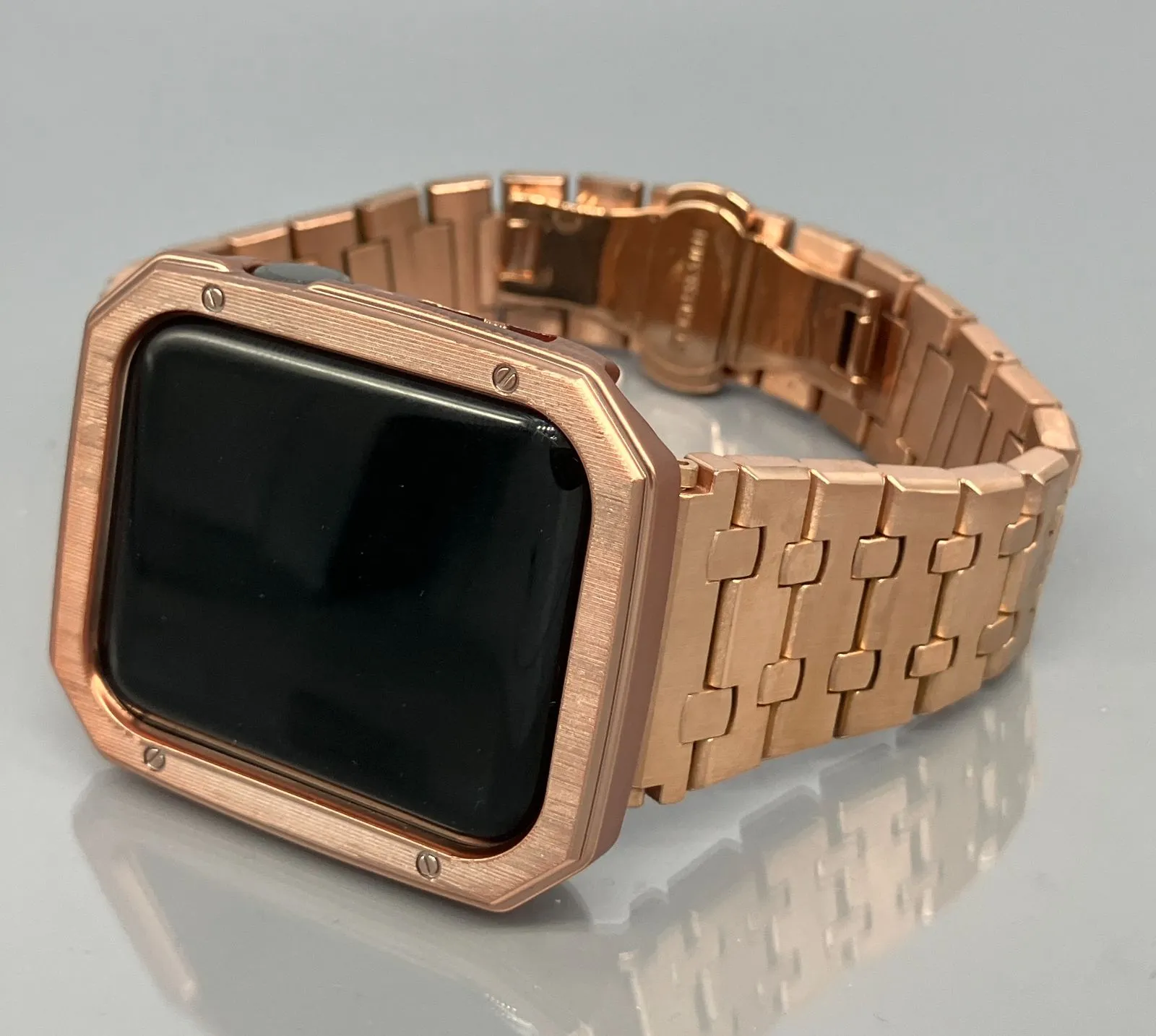 GimelZayinセット 4スクリュー鏡面 ローズゴールド ステンレス アップルウォッチバンド ultra ウルトラ ケース カバー メンズ レディース 40mm 41mm 44mm 45mm 49mm Apple Watch バンド