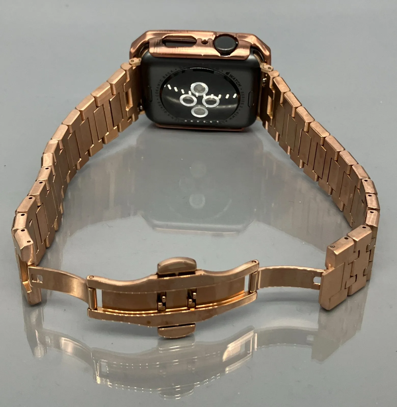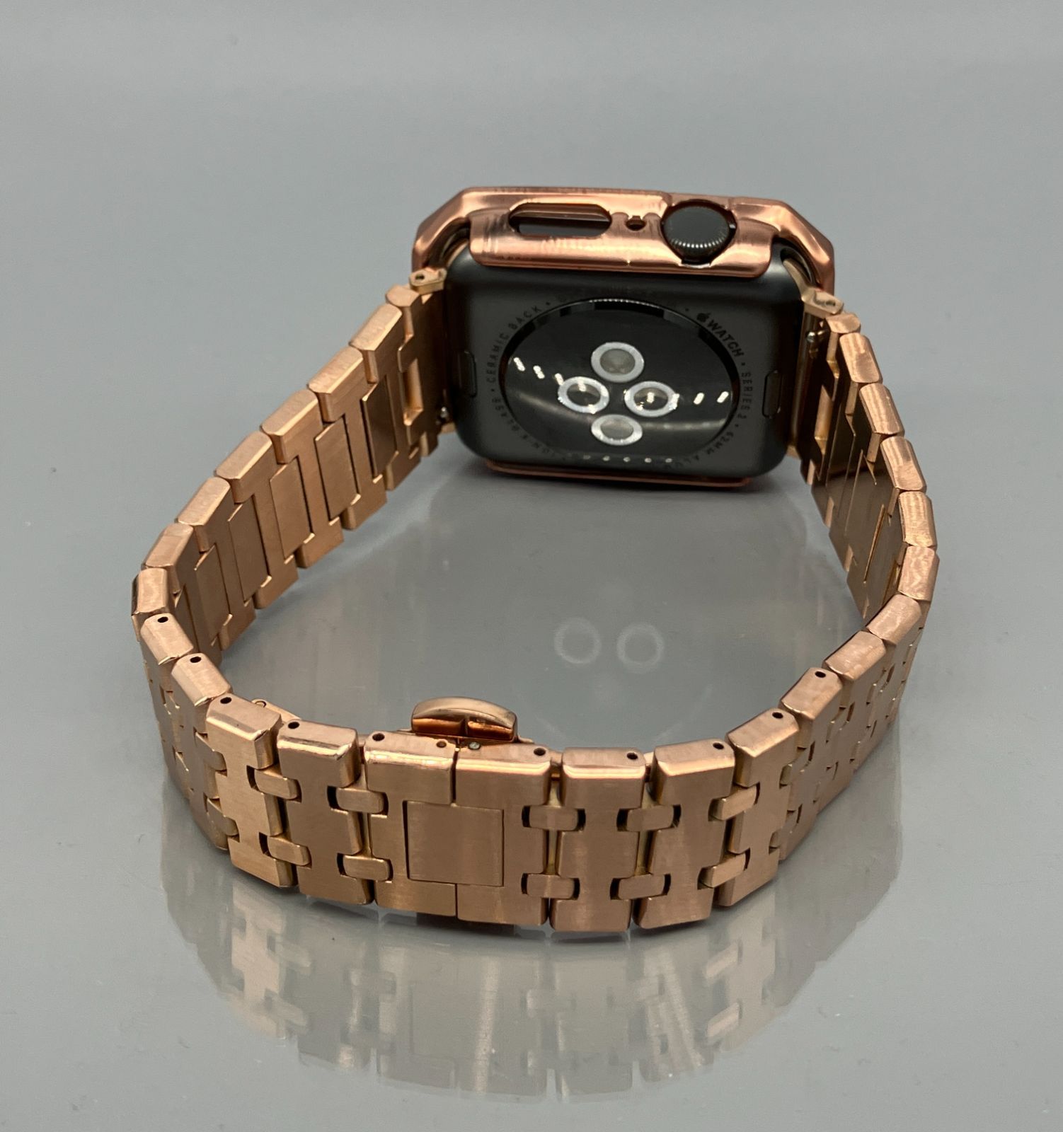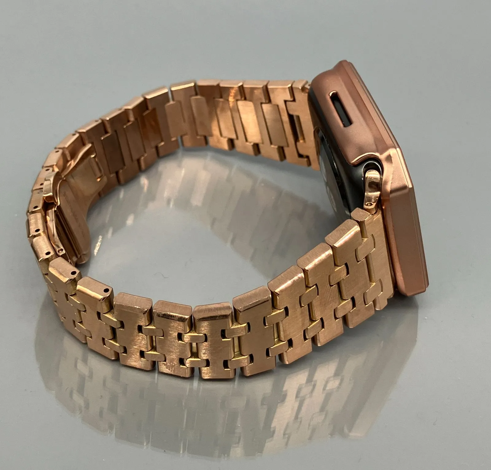 GimelZayinセット 4スクリュー鏡面 ローズゴールド ステンレス アップルウォッチバンド ultra ウルトラ ケース カバー メンズ レディース 40mm 41mm 44mm 45mm 49mm Apple Watch バンド