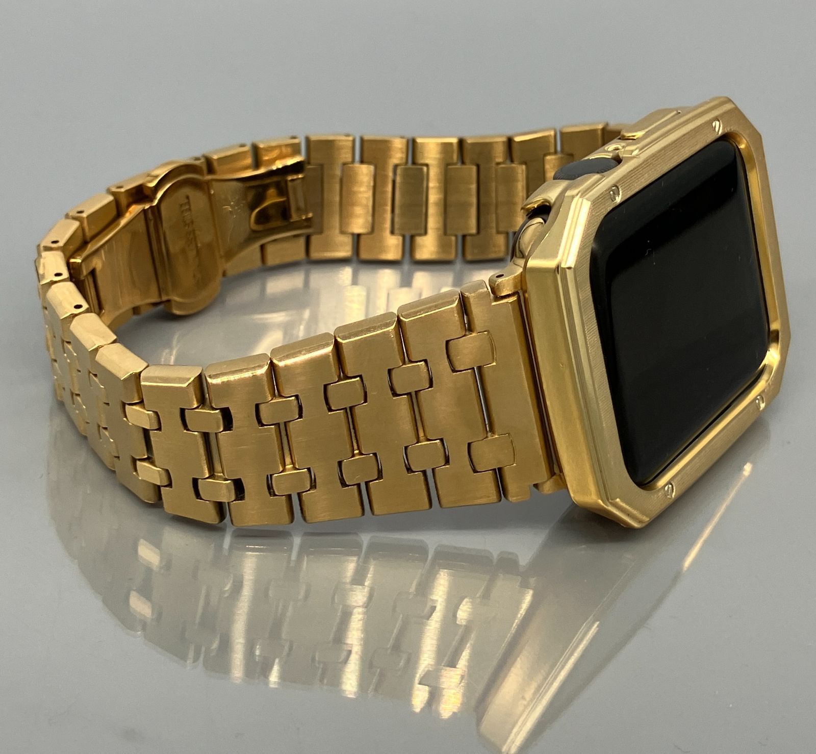 GimelZayinセット 4スクリュー鏡面 ゴールド ステンレス アップルウォッチバンド ultra ウルトラ ケース カバー メンズ レディース 40mm 41mm 44mm 45mm 49mm Apple Watch バンド