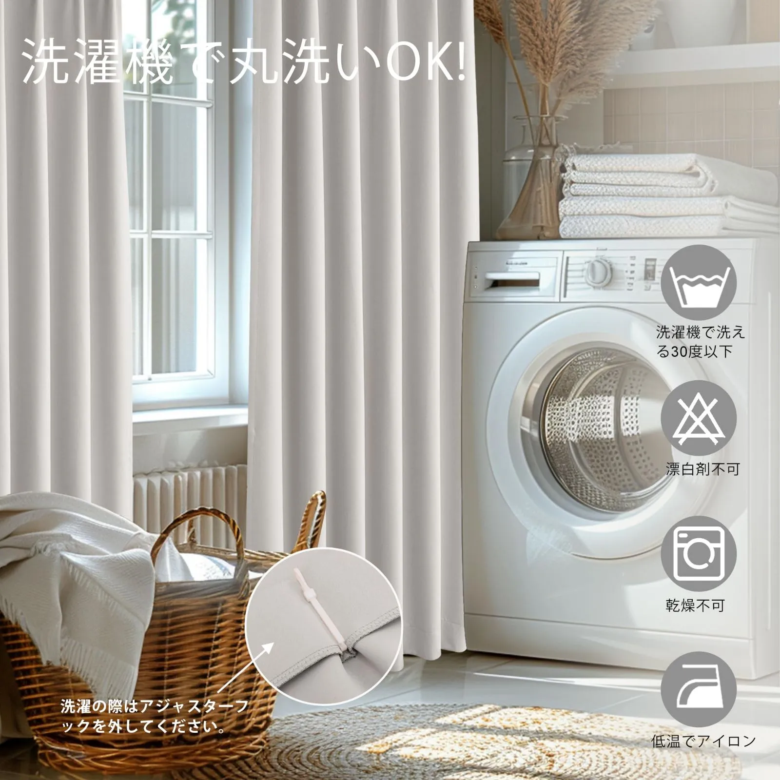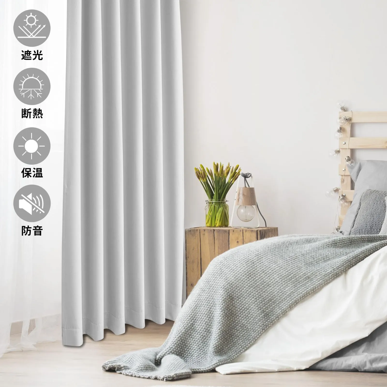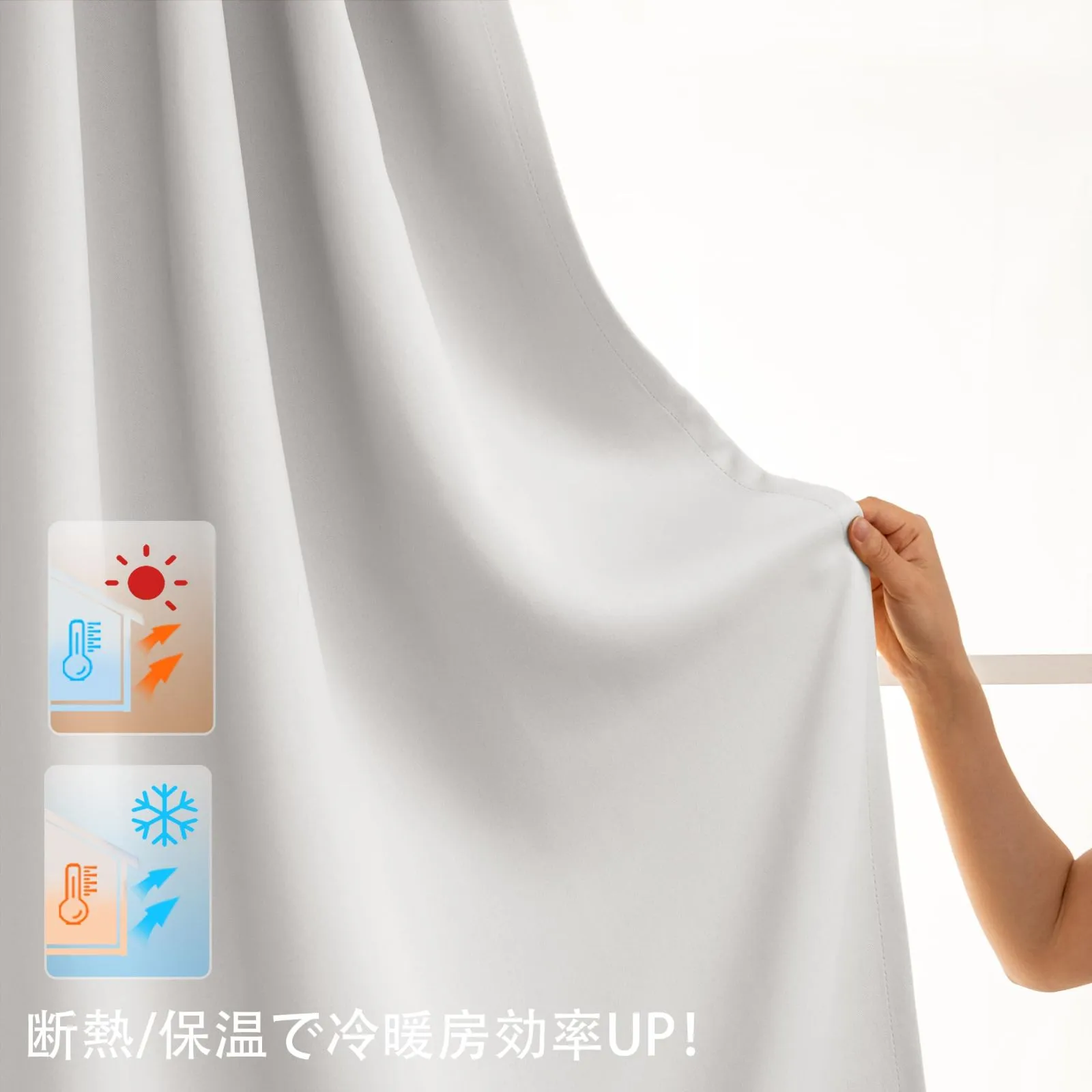 【断熱/保温で冷暖房効果アップ】遮光カーテンは、優れた遮光効果だけでなく、断熱、保温、そして防音機能も備えています。夏はお部屋の室温上昇を、冬は室温の低下を防ぎ、冷暖房の効率を高めることができる断熱カーテンです。遮音層もあるので、遮音カーテンを付けたら、室外からの雑音も軽減することができます。
