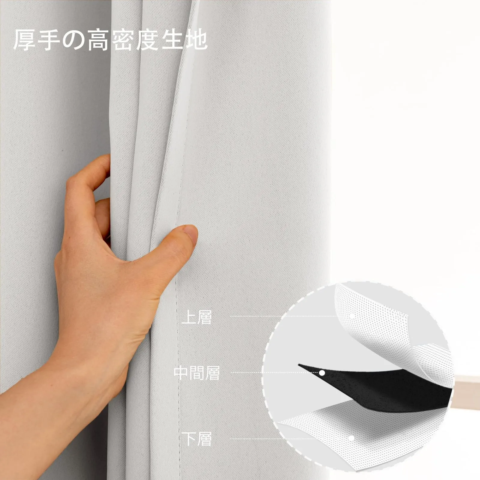 【厚手の高密度生地】100%ポリエステル繊維を使用しており、三層縫製技術を採用して、シルクのような柔らかさとマットな質感を実現しました。また、高密度な生地で、遮光性と耐久性の両方に優れており、長期間使用できるのも魅力的なポイントです。