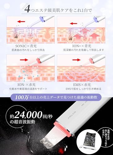 【美人百花毛穴ケア美顔器部門NO1】ANLAN ロイヤル ウォーターピーリング IPX7防水仕様 美顔器 1台6役 超音波ピーリング emsリフトケア イオン美顔器 赤青光エステ 毛穴ケア男女兼用 Type-C充電スタンド 出張 旅行 自宅用 誕生日プレゼン/