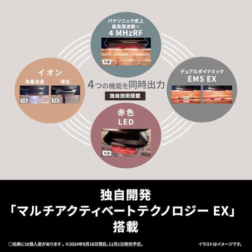 4MHzの「高出力RF」、進化した「デュアルダイナミックEMSEX」、「LED」、「イオン」の4つの機能を搭載した「マルチアクティベートテクノロジーEX」を採用。
