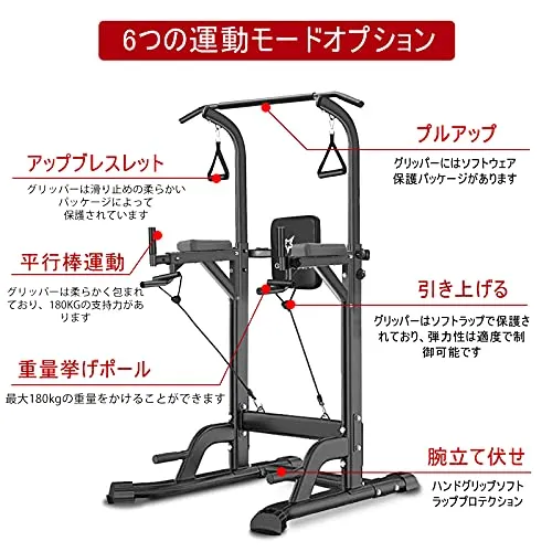 懸垂マシン 耐荷重180kg 11段階高さ調整 多機能筋トレ器具 家庭用 日本語説明書付き/