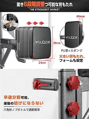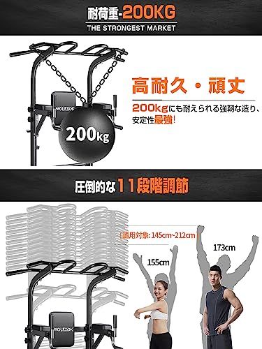 懸垂マシン 【7in1多機能・改良バー・耐荷重200kg】 チンニングスタンド 高度11段調節可能 Wolfyok fitness ぶら下がり健康器 けんすいマシーン 筋トレ器具 背もたれ6段 アームレスト3段 土台π字型 ディップス マルチバー付き 筋トレ/