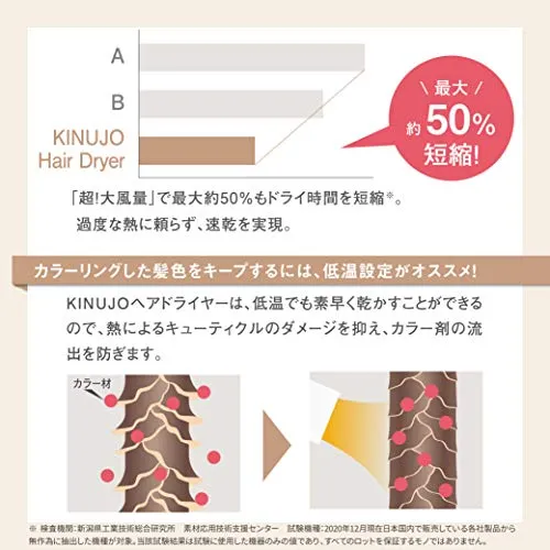 絹女?KINUJO? KINUJO Hair Dryer ヘアドライヤー 大風量 マイナスイオン コンパクト 超!遠赤外線 ホワイト 白 3段階 温度調整/