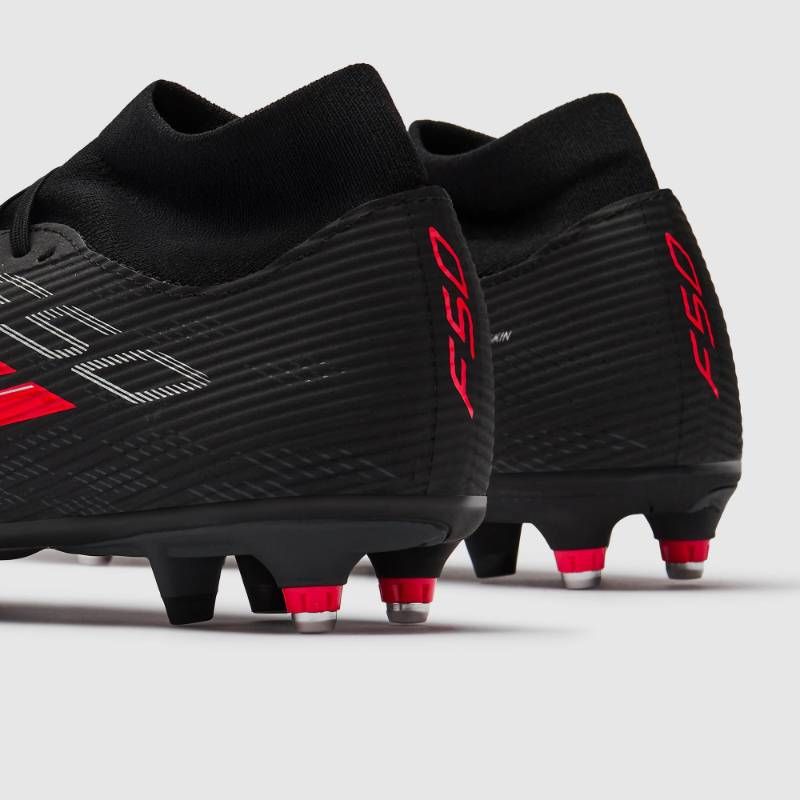 コアブラックにルシッドレッドを配した精悍なカラーリング。ぬかるんだピッチでも圧倒的な加速力を発揮し、ディフェンスを翻弄する一足です。
