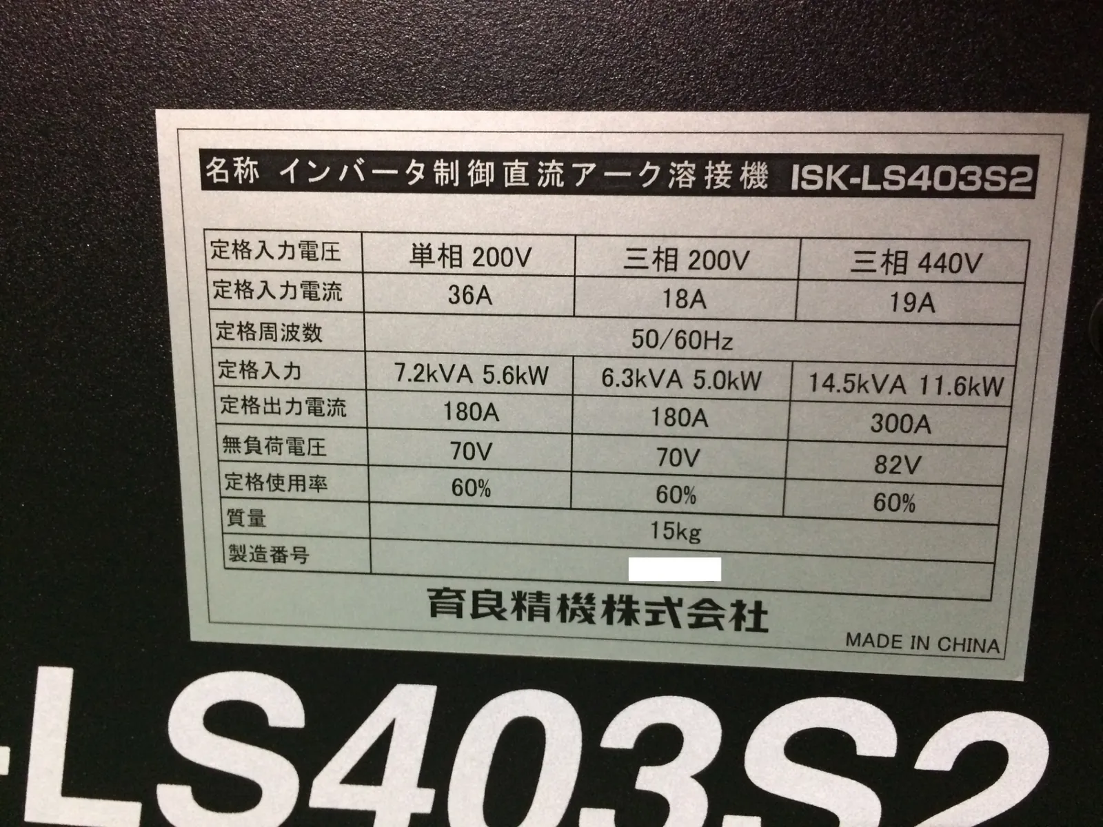 商品名:☆未使用品☆育良精機 IKURATOOL ポータブルアーク溶接機 ライトアーク ISK-LS403S2 200V