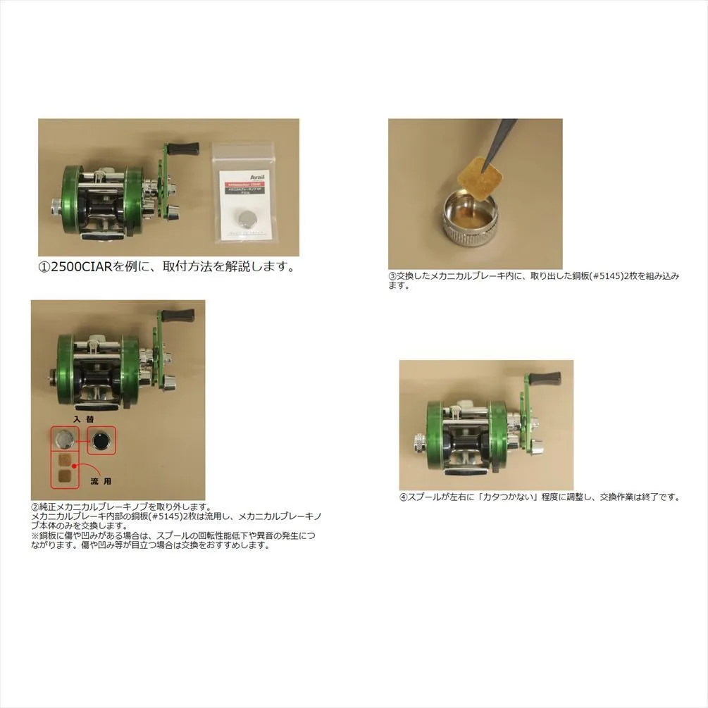 基本的に、純正と入れ替えるだけです。銅板のシムが入っているので、スプールのセンター出しに使ってください。