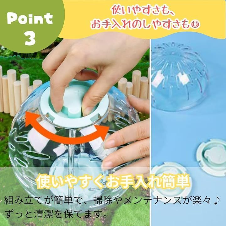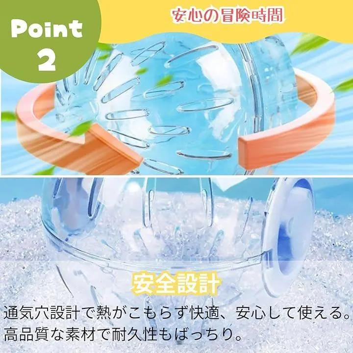 「運動促進」ケージの外でも安全に運動でき、ハムスターの健康維持に役立つ。