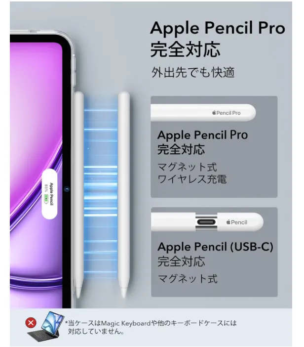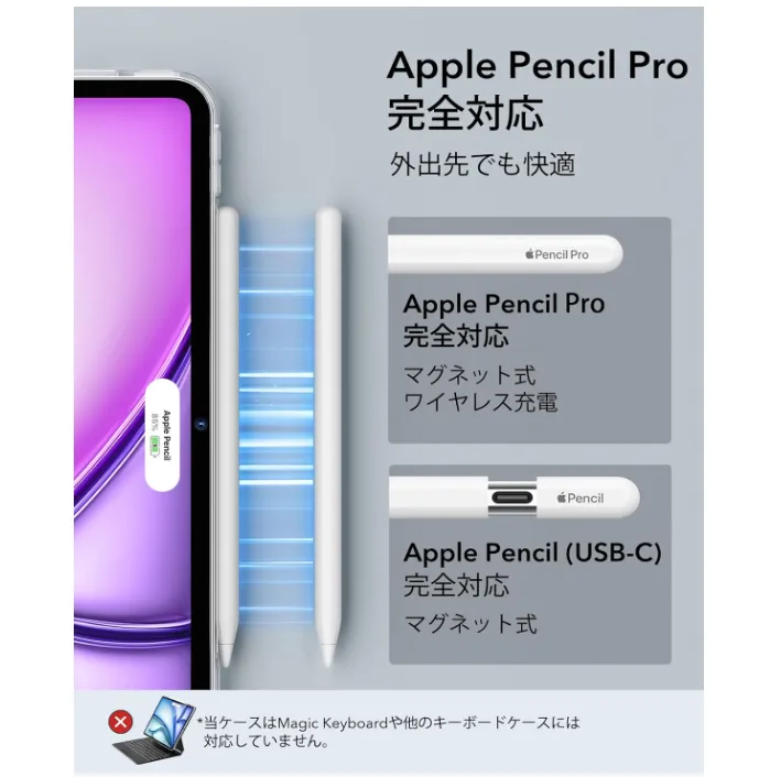 【Pencil Pro&Pencil (USB-C)対応】:Pencil Proの磁気ペアリングと埋め込み式充電コネクタに完全対応しています