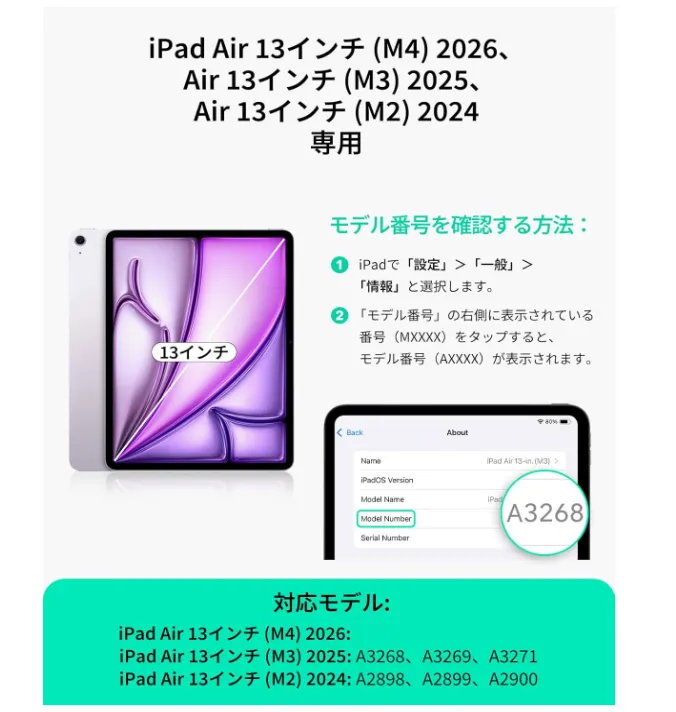 【対応機種】 iPad Air 13インチ (M4/M3/M2、2026/2025/2024)、 モデル:A3268, A3269, A2898, A2899 互換性を確認するには、iPadの背面下部にあるモデル番号「AXXXX」を確認してください メーカー希望小売価格:2,890円 未使用品ですが、保管時につく擦れ汚れ等が若干ある場合がございます。 また、写真の光の加減により、実物と画像の色味に違いがある場合がありますのでご了承ください。 ※ヤマト運輸にてお届けいたします。 <商品特徴>