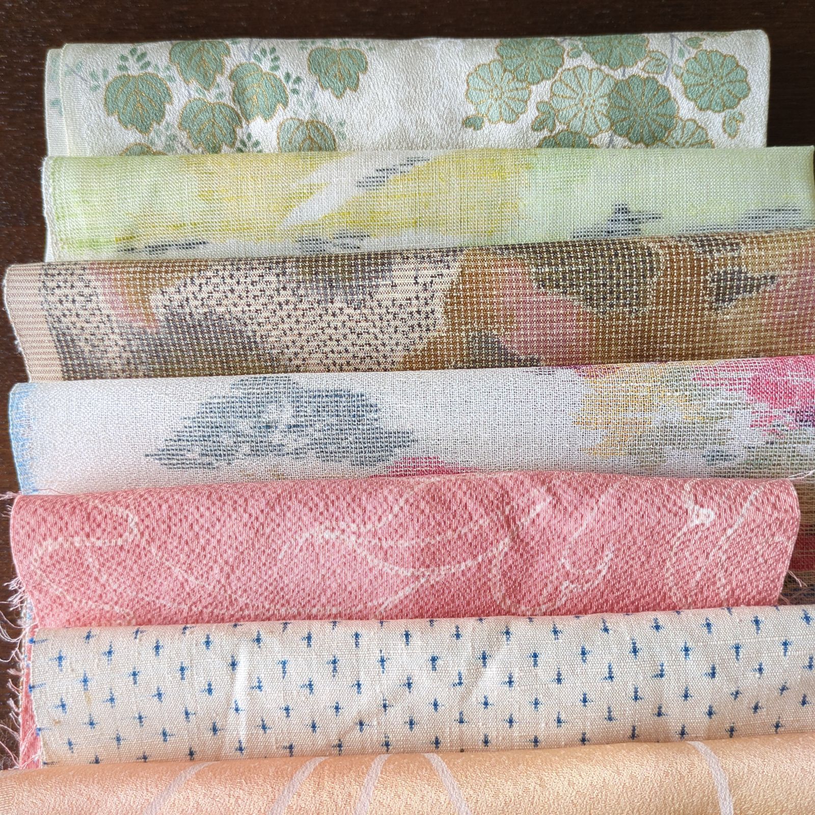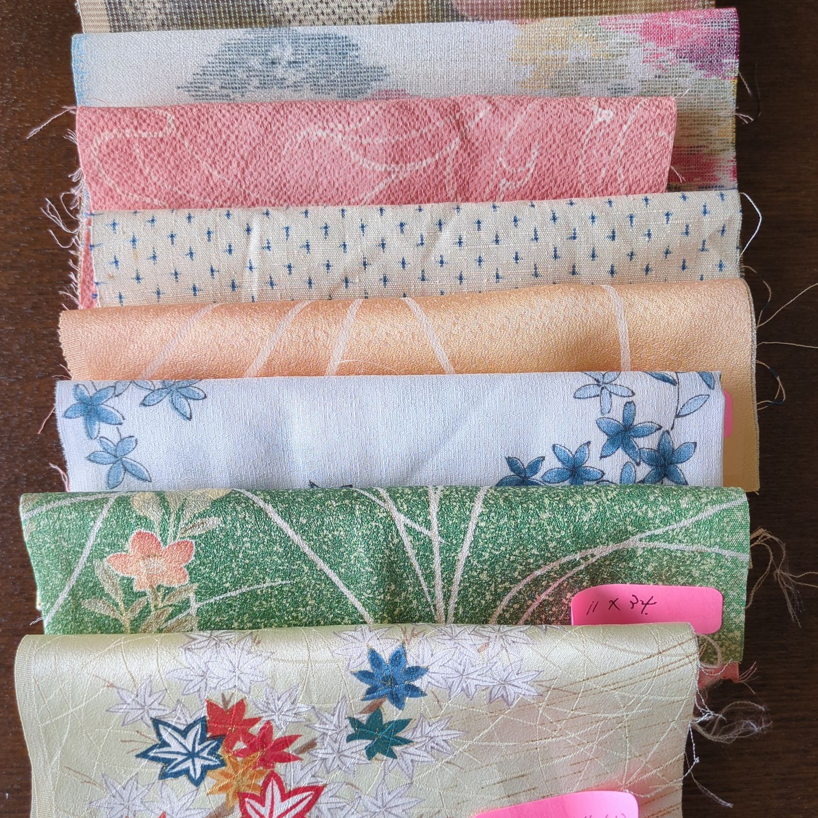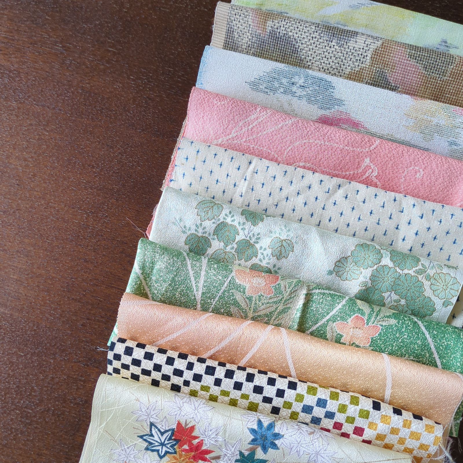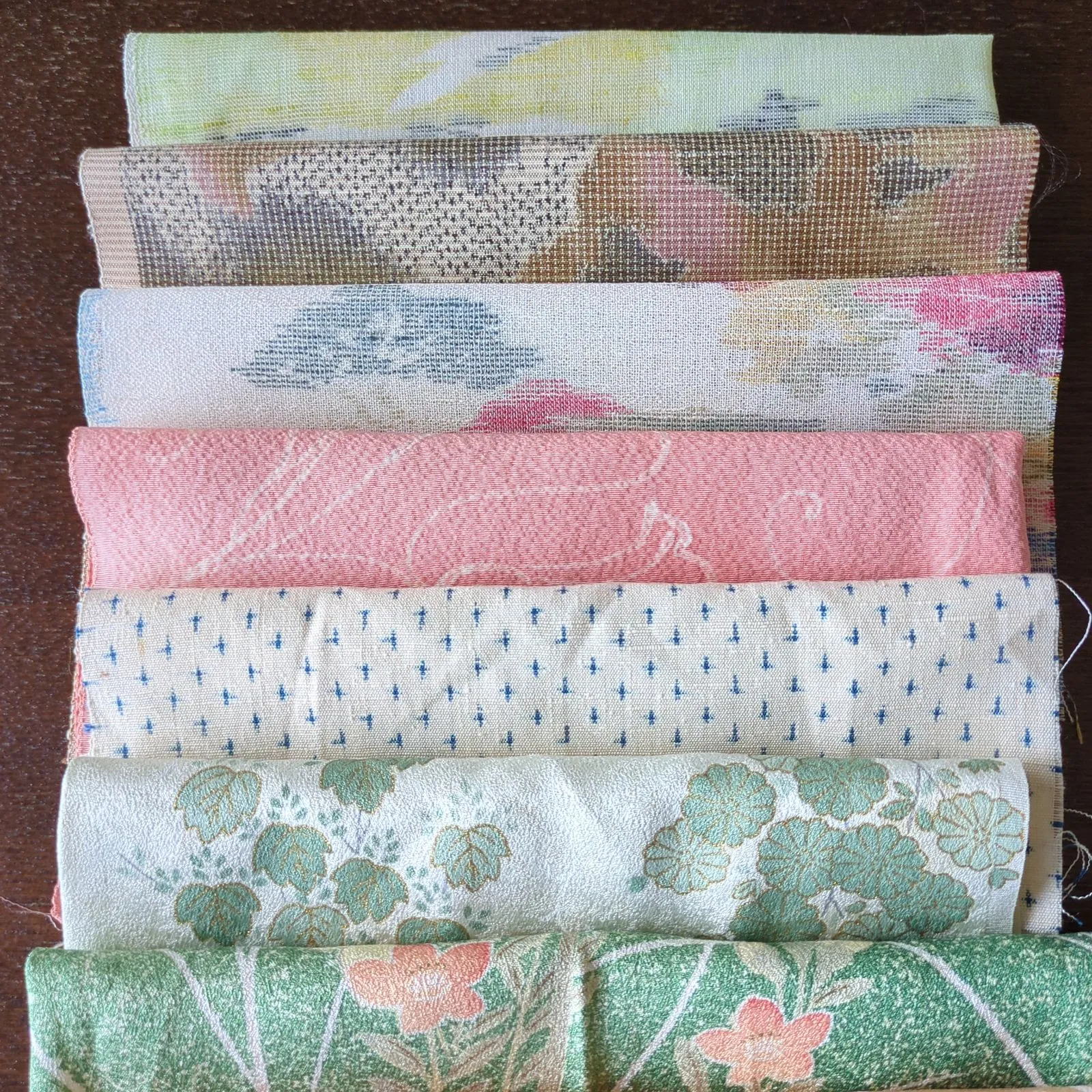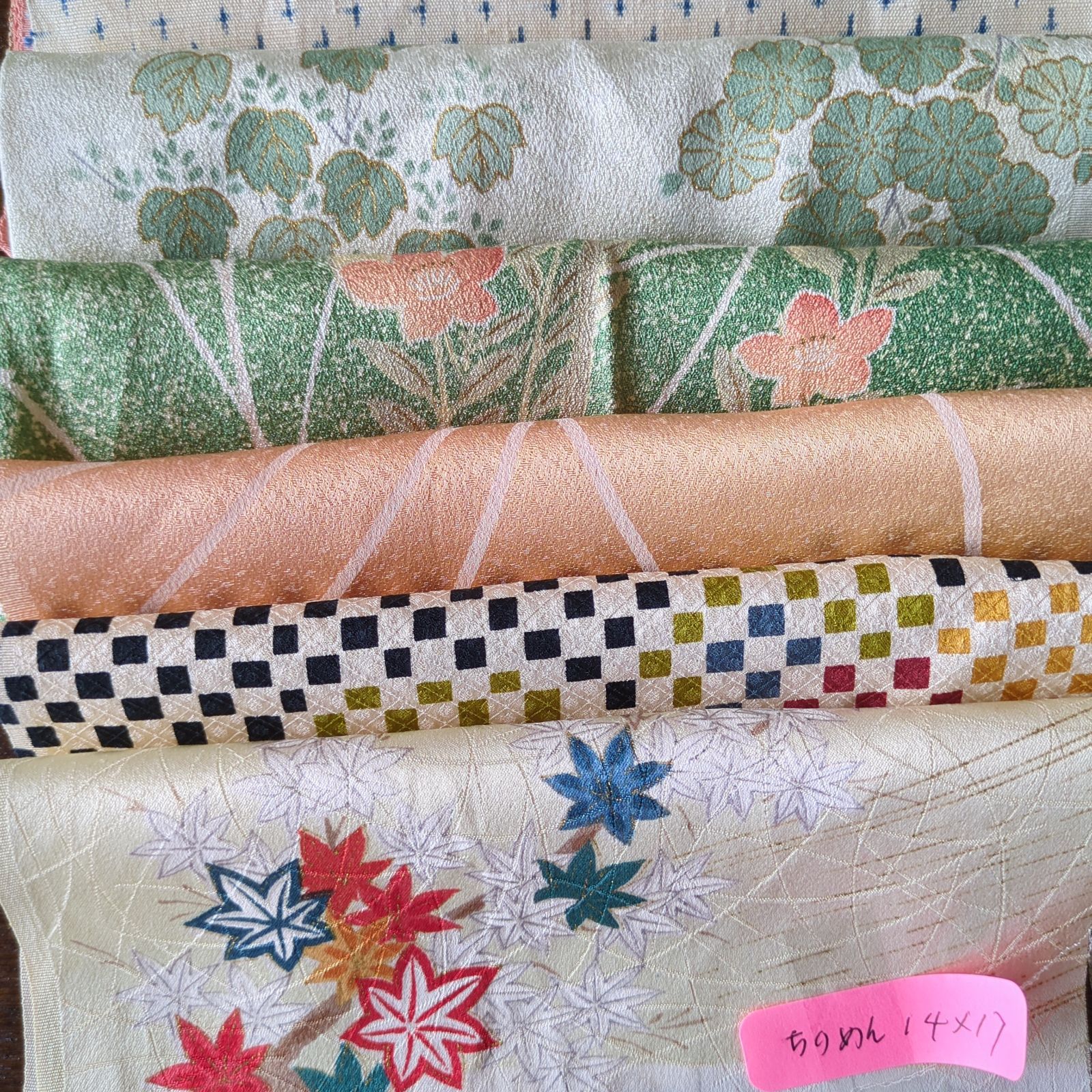 正絹大島紬ちりめん十字絣のカットアンティークハギレ10枚パッチワークハンドメイド素材インテリア