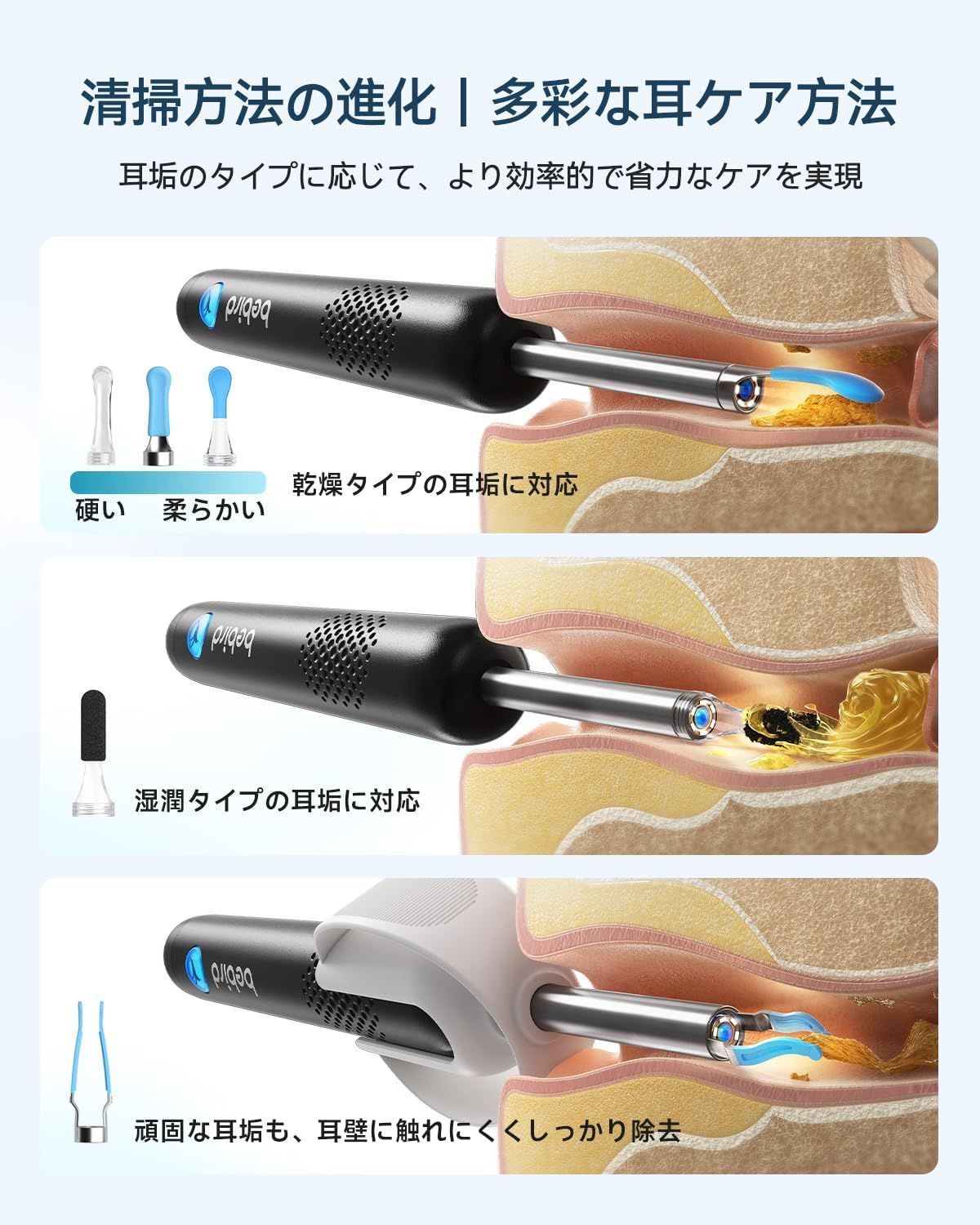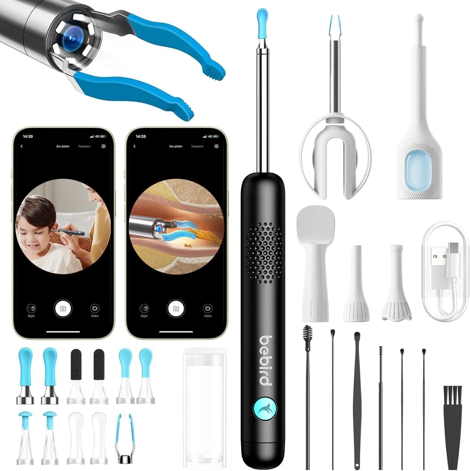 【Bebird 第3世代R1】カメラ付き耳かき |1080P画質強化処理|3.1m極細·39.3mm極長|明るさ調節可能LEDライト付き|ピンセット付属|耳口鼻観察カバー付属|点薬補助具付き|Bebird専用アプリ|IP67防水|耳垢取り 耳掃除