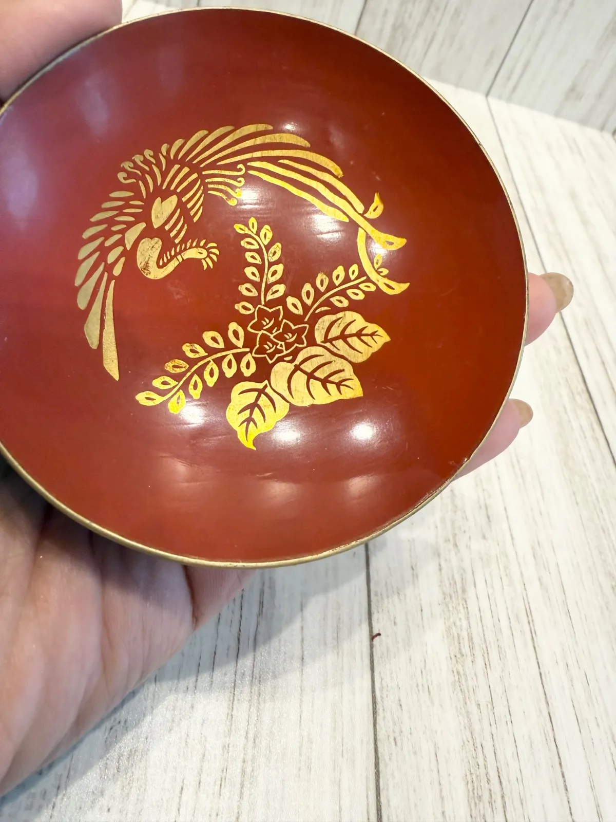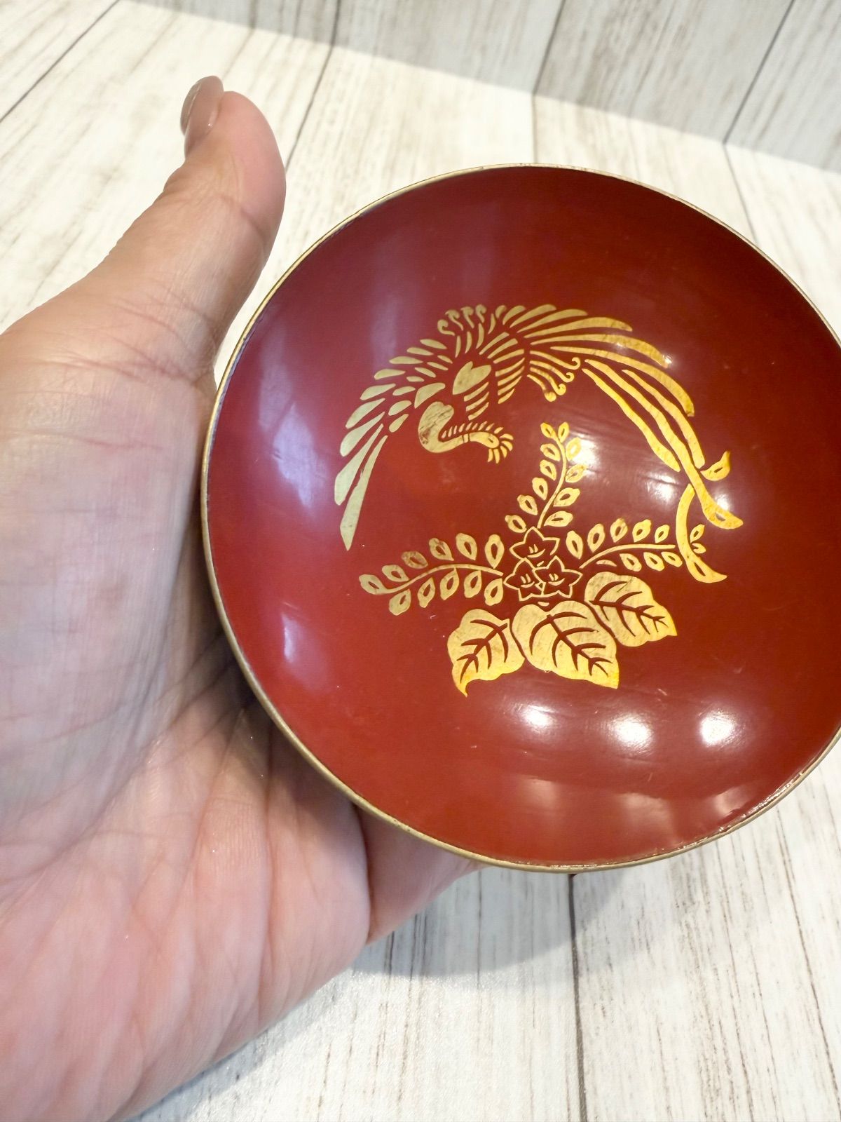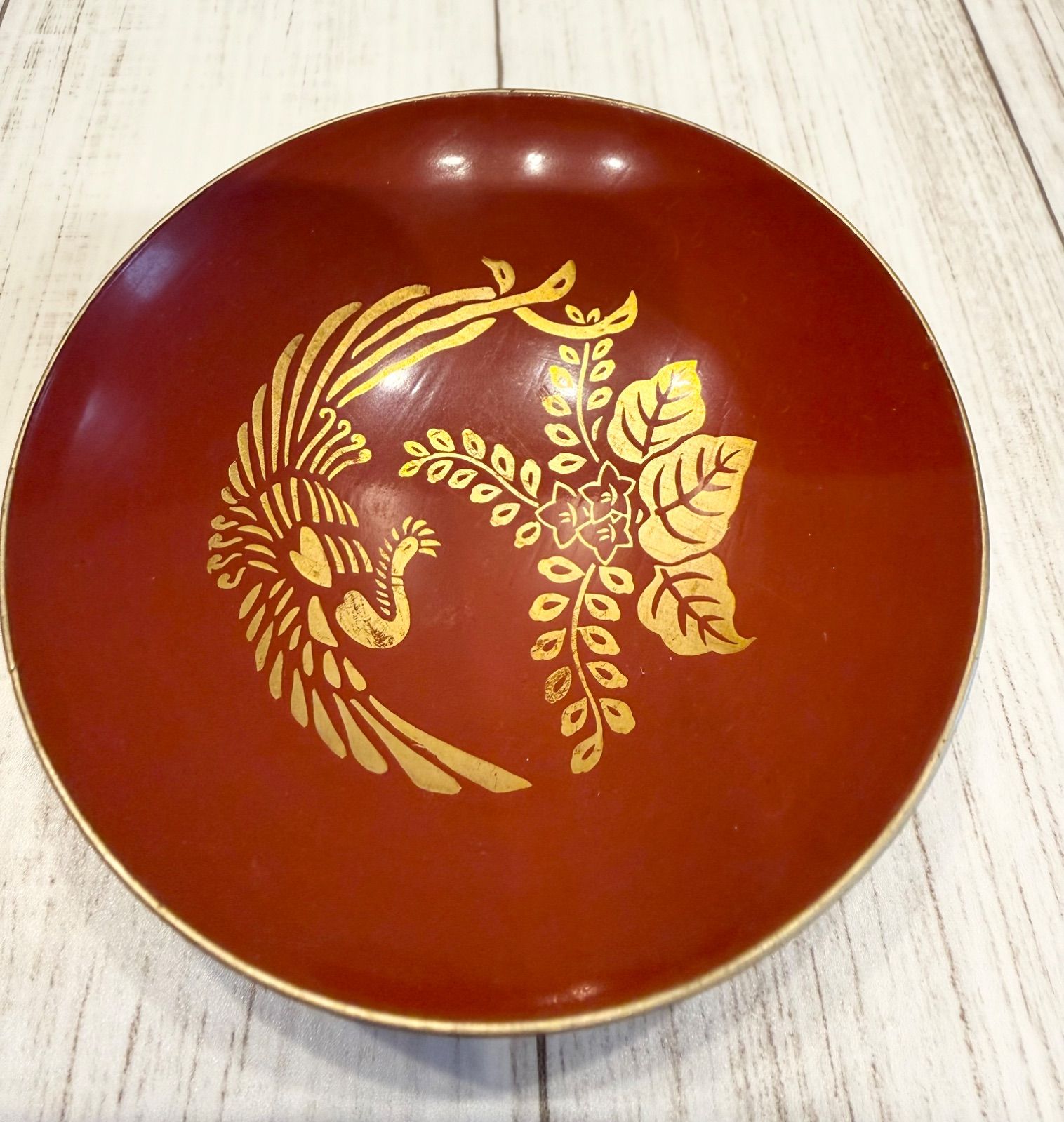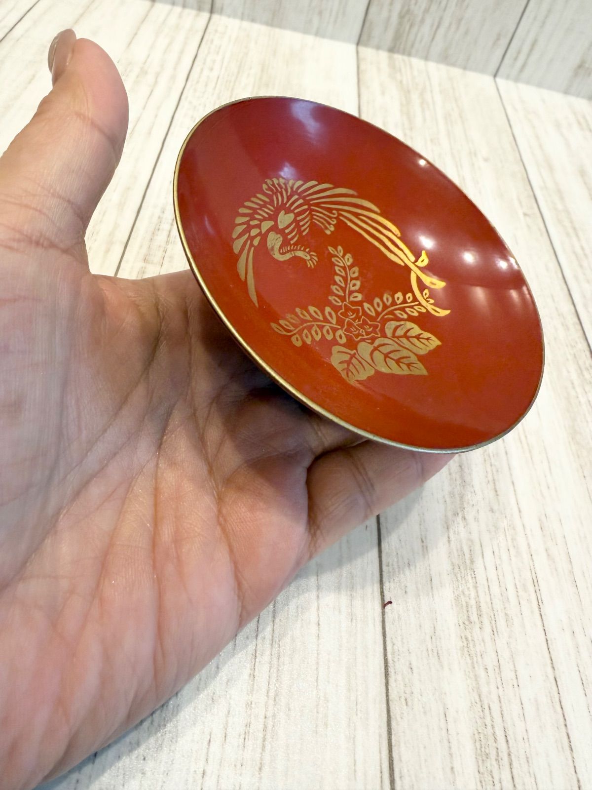 朱塗り 鳳凰 蒔絵 盃 漆器 金彩 祝い盃 昭和レトロ 小皿 縁起物