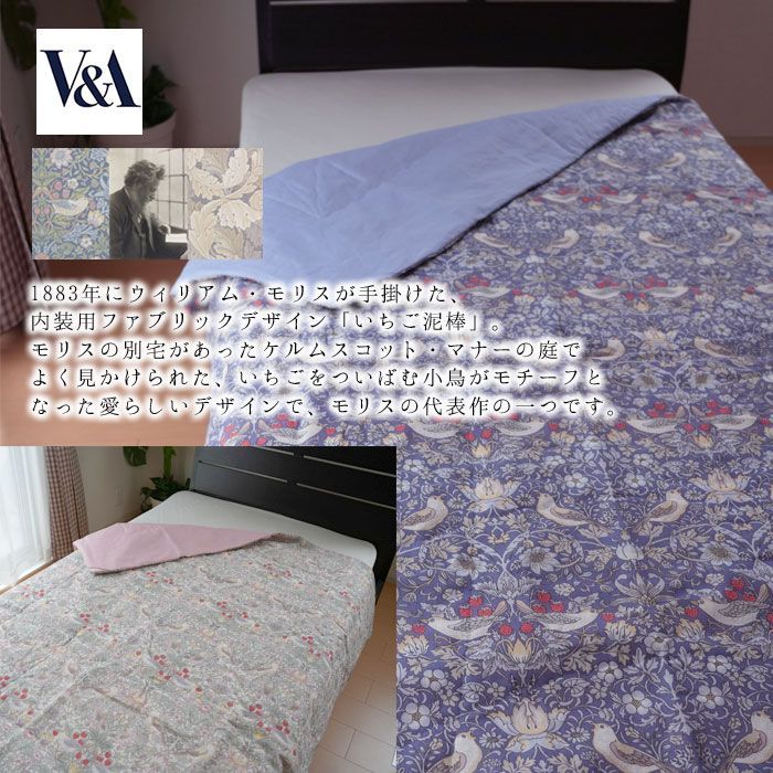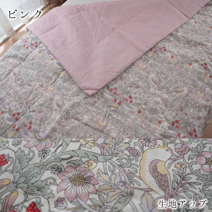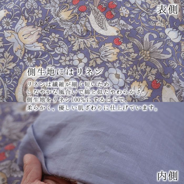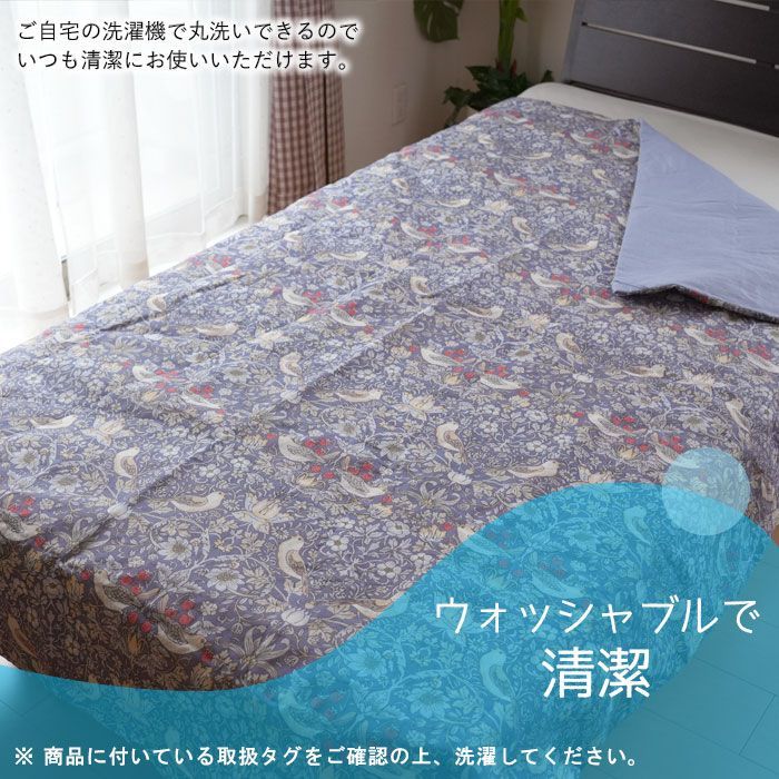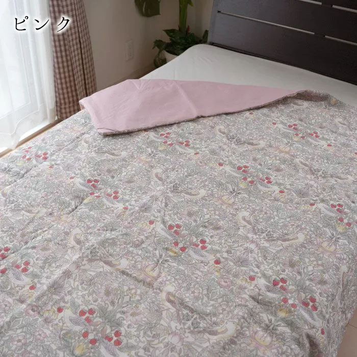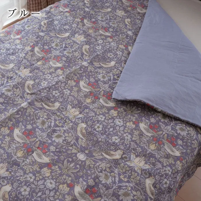 本麻肌掛けふとん オール麻 肌掛けふとん シングル 140×190cm いちご泥棒柄 洗える ウイリアムモリス V&A ロマンス小杉 母の日 贈り物 ふとん 布団 2836-4300