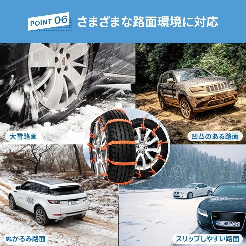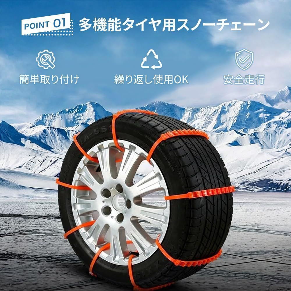 OKUYOSHI タイヤチェーン 非金属チェーン スノーチェーン タイヤ用 滑り止めバン 本数多い 汎用 サイズ調整可 雪道・凍結・泥道対応 ジャッキ不要 簡単装着 16本
