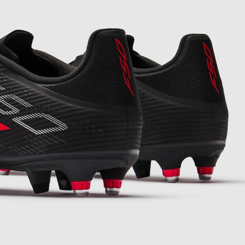 コアブラックにルシッドレッドを配した精悍なカラーリング。ぬかるんだピッチでも圧倒的な加速力を発揮し、ディフェンスを翻弄する一足です。