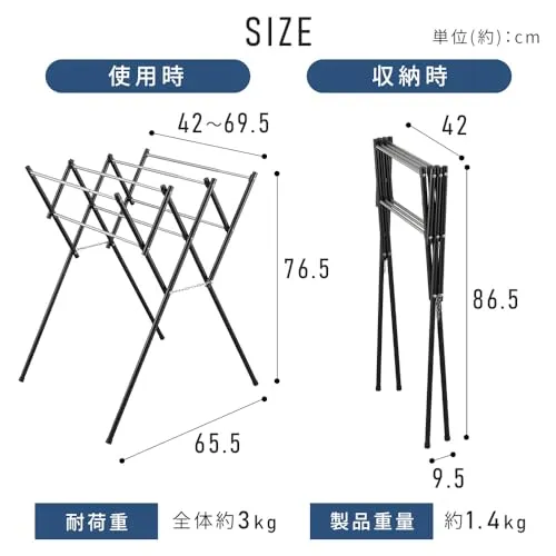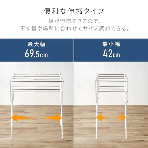 便利な伸縮タイプ幅が伸縮できるので、干す量や場所に合わせてサイズ調節できます。