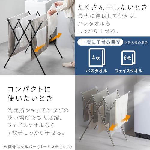 コンパクトに使いたいときの最小幅:約42cm。洗面所やキッチンなどの狭い場所でも大活躍。フェイスタオルなら7枚分しっかり干せます。