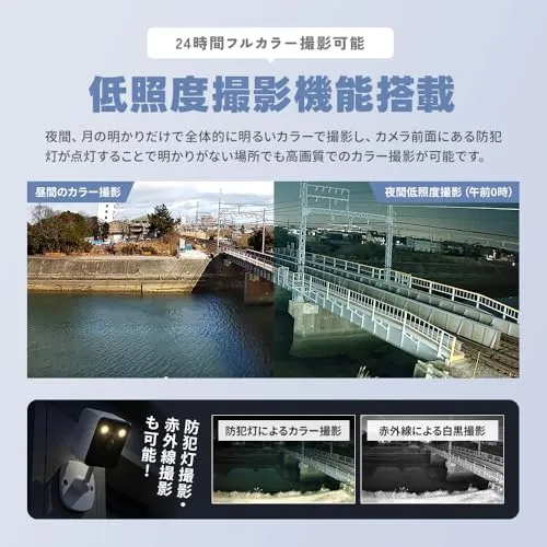 【夜間に強い低照度撮影機能】真っ暗な夜間でも、昼間のような明るさで撮影できる低照度撮影機能を搭載。さらに24時間フルカラーで撮影が可能です!