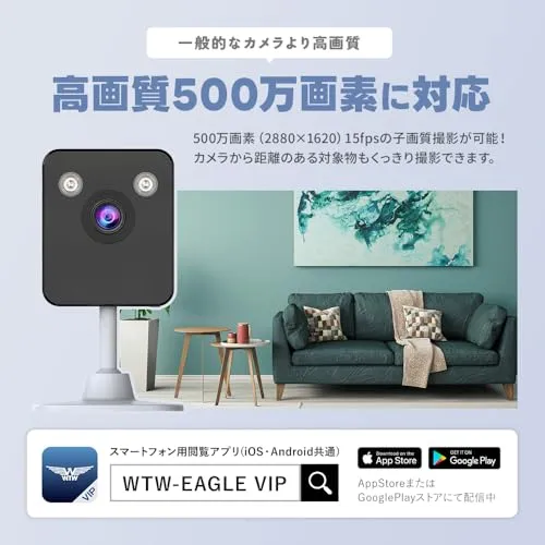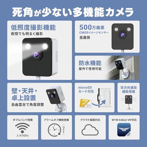 WTW 塚本無線 防犯カメラ 簡単設置 500万画素 低照度撮影機能 屋外 屋内 見守り 卓上/天井/壁面設置 小型 2.4Ghz/5Ghz対応 ダブルバンド ペットカメラ ベビー 高齢者 ワイヤレス 防犯灯 夜間撮影 双方向通話 スマホで監 6d3859f5