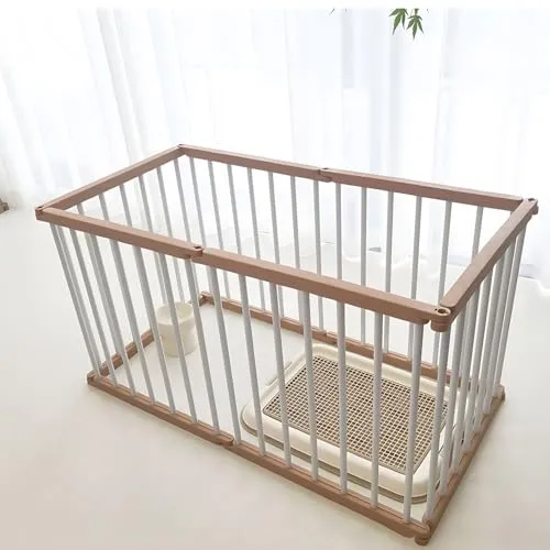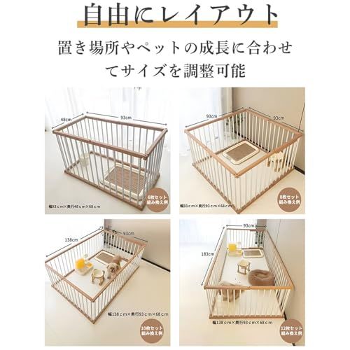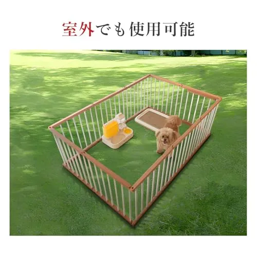 ペットサークル 犬 サークル ドア付き 室内外兼用 自由にレイアウトOK 折り畳み ペットケージ 犬 ゲージ 多頭飼い 安全柵 室内 小型犬 中型犬 組み立て簡単 幅48×奥行93×高さ68cm 木色☆彡 d0bfdc11