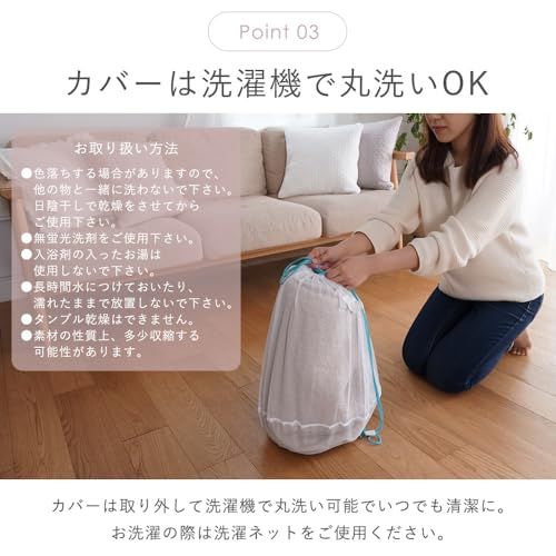 カバーは取り外して洗濯機で丸洗い可能でいつでも清潔に。 お洗濯の際は洗濯ネットをご使用ください。お部屋に合わせやすいカラー。ナチュラルでシンプルなお色味がお部屋に自然と溶け込みます。