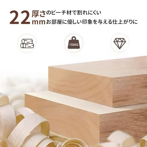 【シンプルな設計】全ての角を丸く加工しているので、手触りも優しく、万一ぶつかっても安心です。耐荷重も約100kgと大人も腰掛けられる耐久性です。材料はラバーウッドを採用し、荷重力が強く、安定して揺れにくく、お手入れは簡単で、干し布を拭くだけできれいになります。耐久の木の構造だから、堅牢で持続可能です