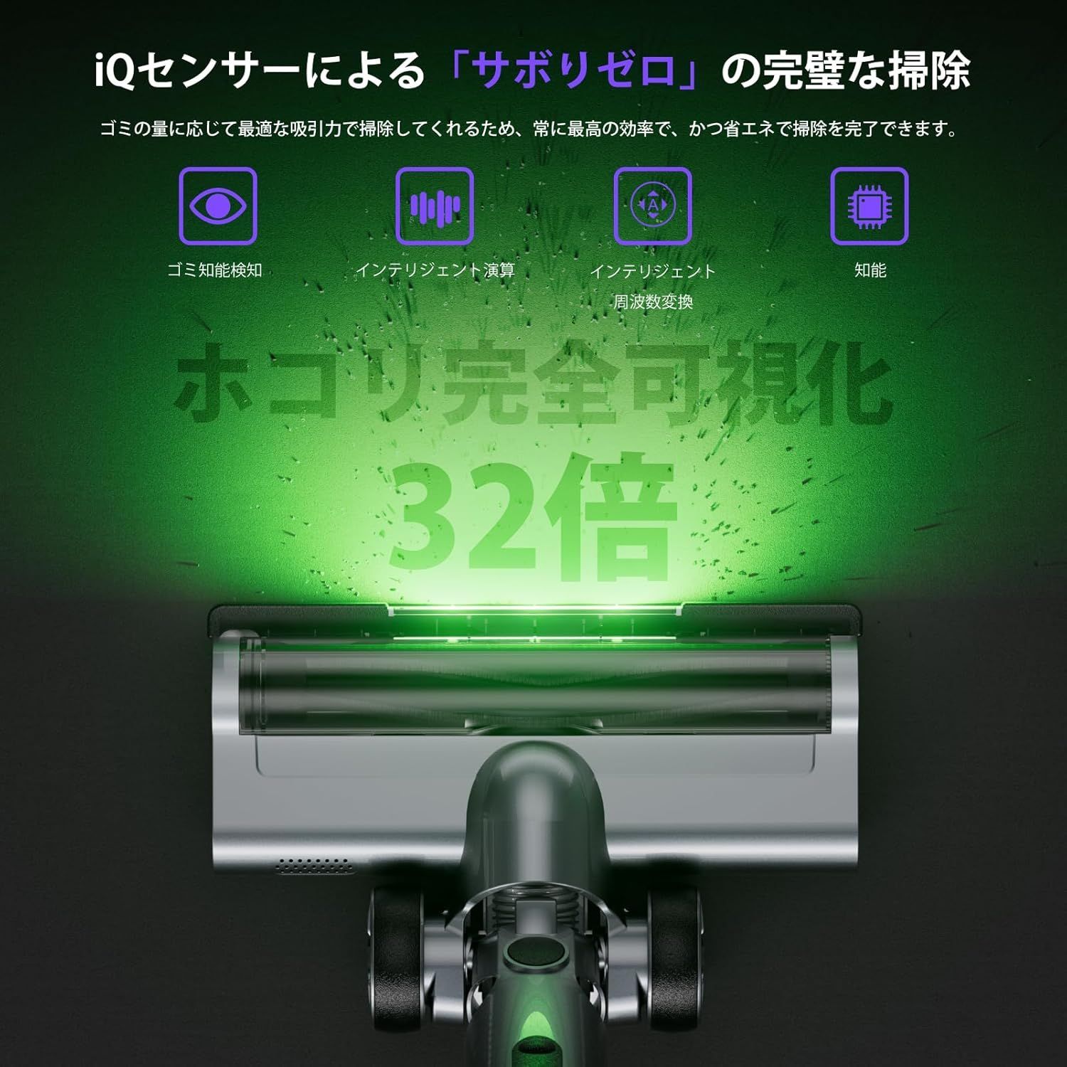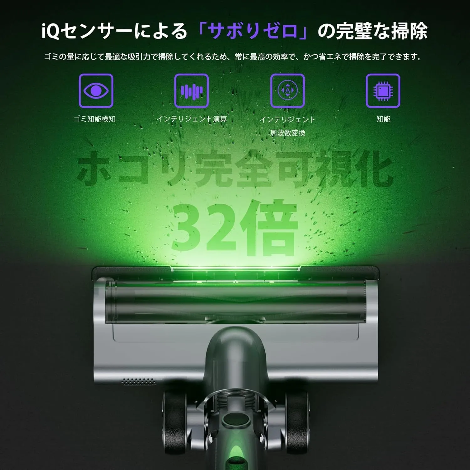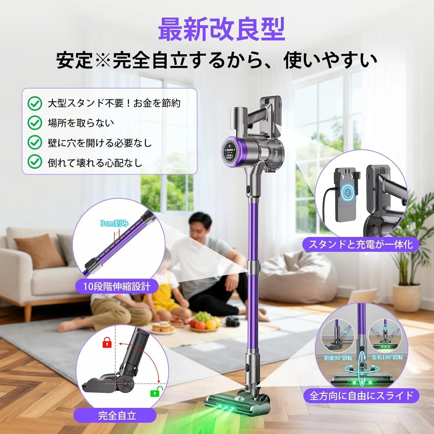 掃除機 コードレス 【2026年新登場!業界トップレベルの115KPa超強力吸引・65分連続稼働・自立式・低騒音・AI汚れ自動検知】 Temaku サイクロン軽量 掃除機 コードレス 革新版グリーンLEDライト/次世代LED液晶ディスプレイ PSE認証済